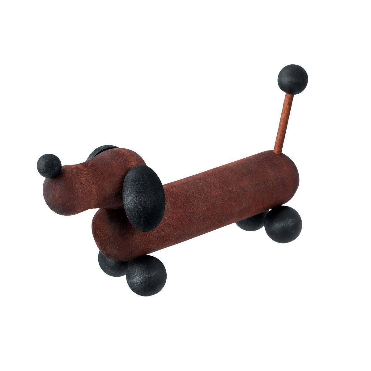 Dog lovers and owners will appreciate this adorable little dachshund figurine by aarikka. Made from aarikka's signature beads and maple wood material, it is hand-dyed a brown and black color to resemble the colors of this real-life furry friend. The aarikka Dachshund Wood Figurine will be a charming piece of home decor, or make the perfect gift to a dog-obsessed loved one. Aarikka's wooden decorative figures are assembled by hand in Finland using sustainable and natural materials.