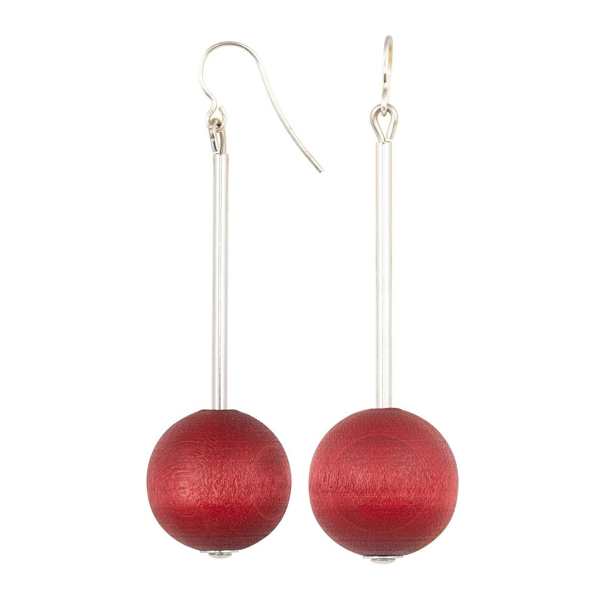 These elegant Elsa earrings feature aarikka's signature hand-dyed maple beads in a stunning wine red hue, which hang on a thin jewelry rod for a dramatic drop. Handmade in Finland, the nickel-free silver metal hooks offer natural movement while remaining light on the ear. Perfect for both a night out or everyday outings, the aarikka Elsa Wine Red Earrings pair beautifully with other aarikka beaded jewelry for a playful yet polished look.