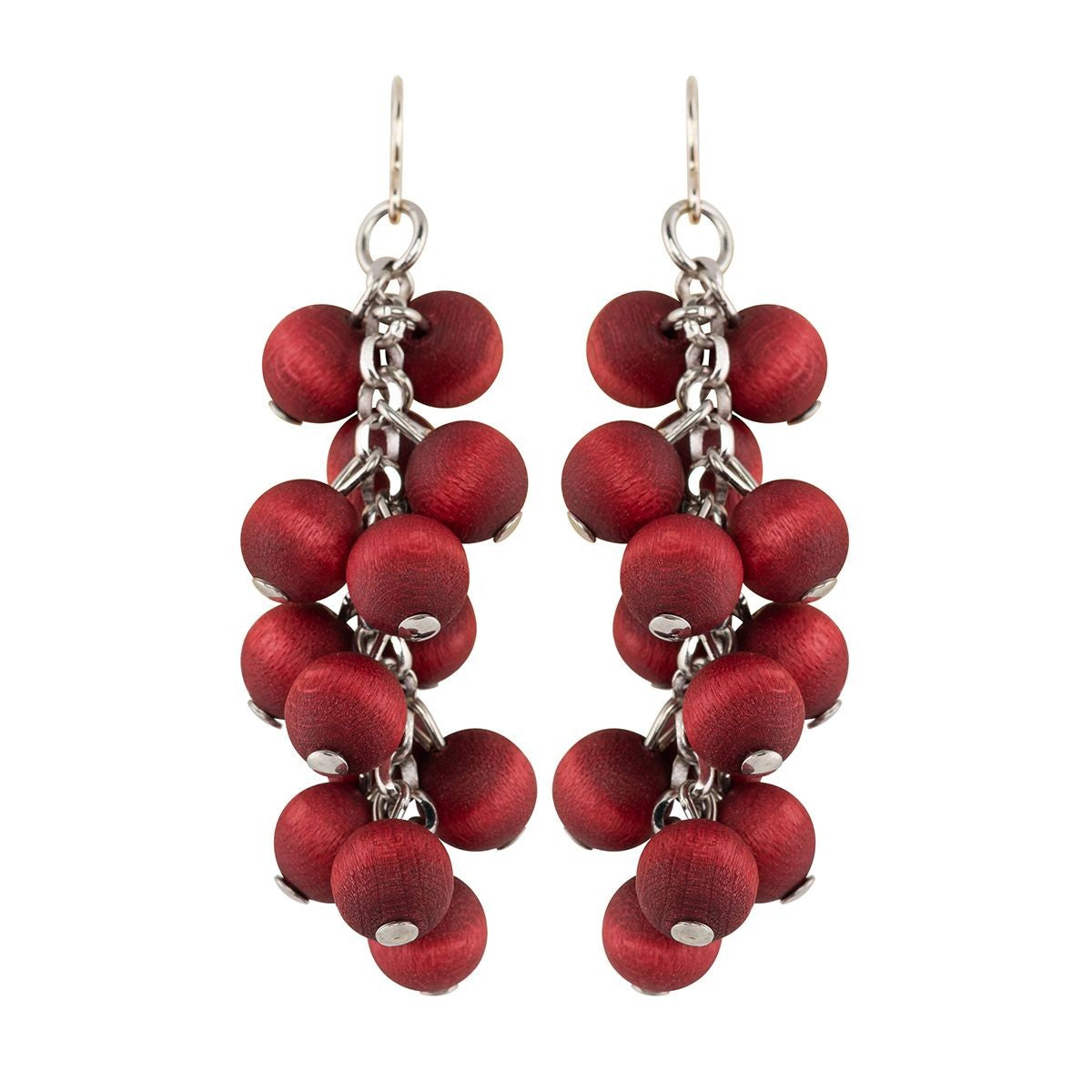 Add sweetness to your ensemble with the Herukka earrings, showcasing lush berry bunches made from aarikka's signature wooden beads. Hand-dyed in a deep red hue, the Herukka line is inspired by jewelry pieces designed in the 1960s by founder Kaija Aarikka for timeless style. Handmade in Finland, the long earrings dangle from nickel-free silver metal hooks for natural movement. The aarikka Herukka Earrings offer a playful addition to any jewelry collection, and are packaged in an aarikka gift box for the perfect gift for a loved one.