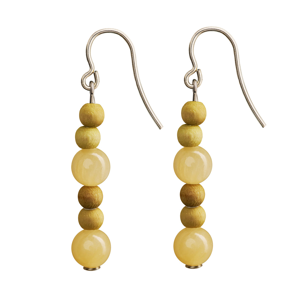 Delicate wood and glass beads are stacked to create the beautiful aarikka Lasihelmi Earrings. Aarikka's signature wood spheres are scaled down in size and hand-dyed in a beautiful butter yellow hue, contrasted by two large glossy glass beads. Handmade in Finland from maple wood, plated brass, and glass, the earrings dangle from nickel-free metal hooks for natural movement. The aarikka Lasihelmi Butter Yellow Earrings will be a unique addition to any jewelry collection and bring a playful ambiance to any outfit.