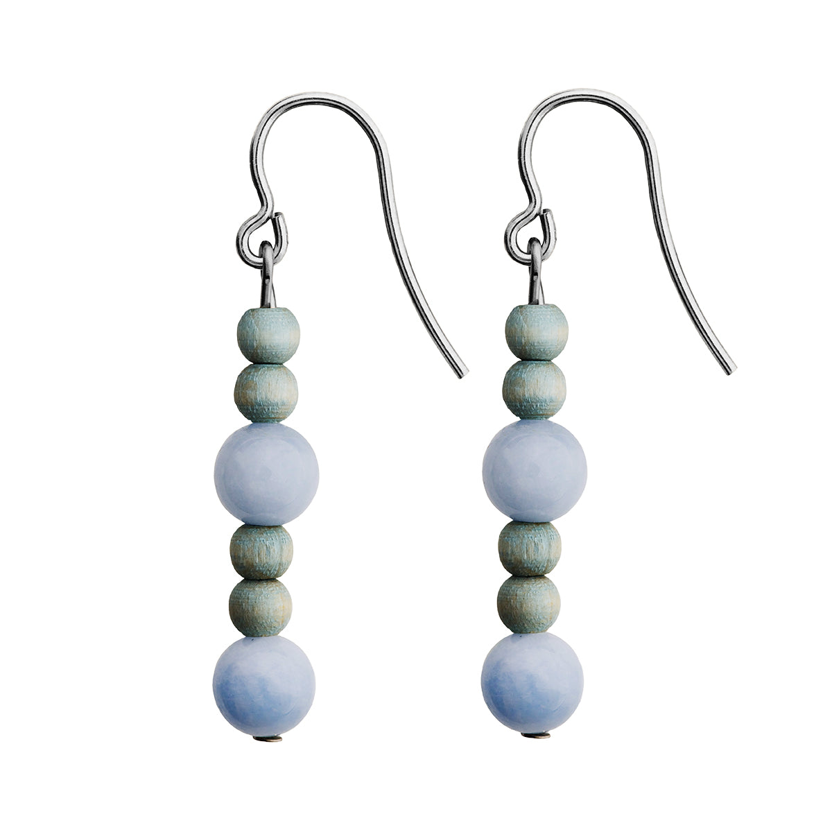 Delicate wooden and glass beads are stacked along the aarikka Lasihelmi Earrings in captivating colors. Aarikka's signature wood spheres are scaled down in size and hand-dyed in a beautiful light blue hue, contrasted by slightly larger, sky blue glass beads. Handmade in Finland from maple wood, plated brass, and glass, the earrings dangle from nickel-free metal hooks for natural movement. The aarikka Lasihelmi Light Blue Earrings will be a unique addition to any jewelry collection and bring a playful ambiance to any outfit.