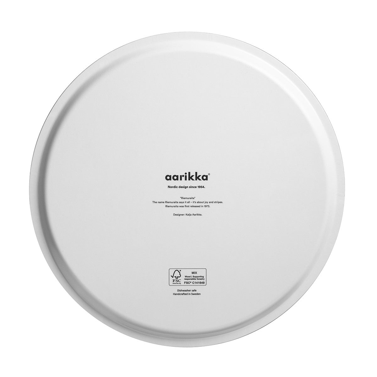 Festive red and white stripes will be the perfect backdrop to this season's treats. The iconic Riemuraita design was first presented in 1973 by aarikka's founder Kaija Aarikka, and remains a classic and timeless print today. Serve snacks, drinks, hors d'oeuvres and more on this adorable and functional tray, or, use it to stylishly contain clutter on a coffee table or vanity. The aarikka Riemuraita Red / White Serving Tray is made of laminated birch plywood, a lightweight yet durable material for multi-purpose use.