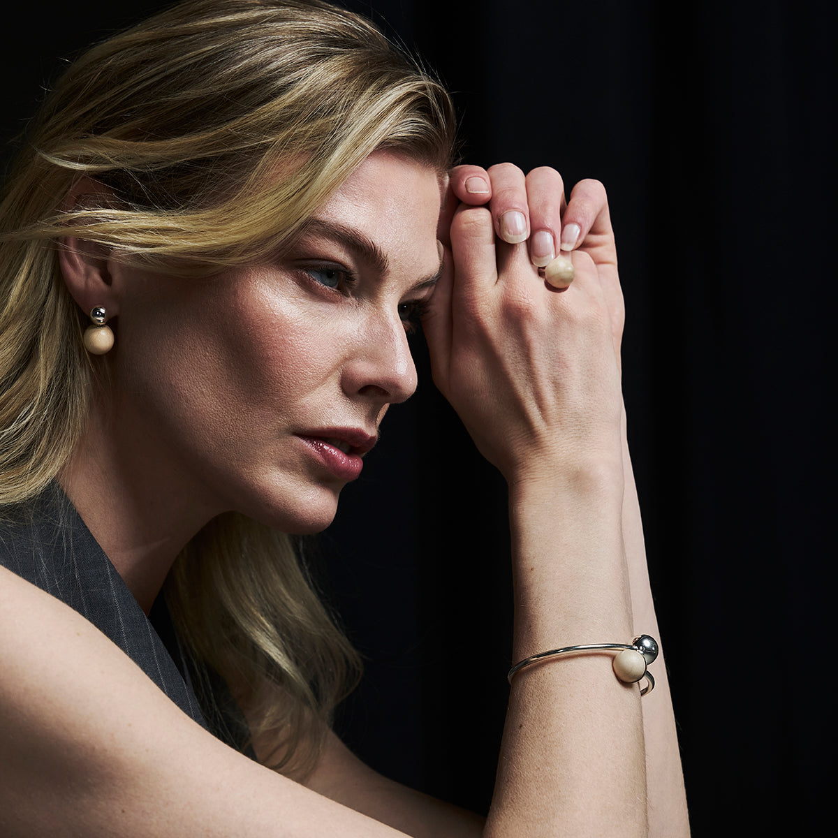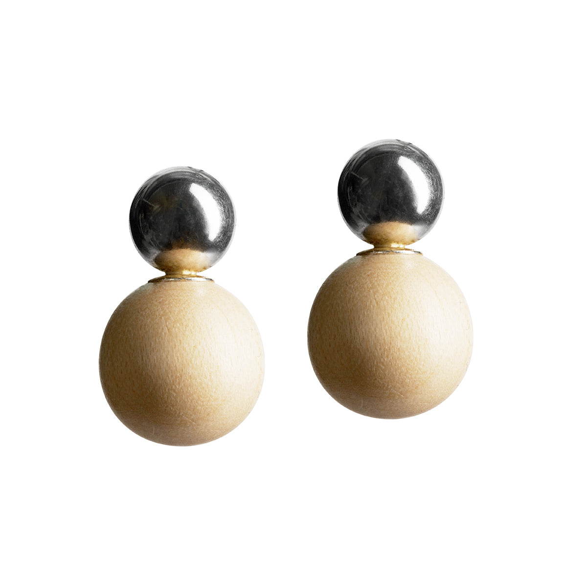 Aarikka's Wood Passion collection combines round, varnished wood and silver elements for unique contrast. The earrings include two stacked beads in different sizes, one sterling silver and the other featuring aarikka's signature round ball in varnished wood. Made in Finland, they have simple stud fastenings with a butterfly push-back. The aarikka Wood Passion Earrings will be a beautiful accessory that suits both going-out attire or everyday ensembles.