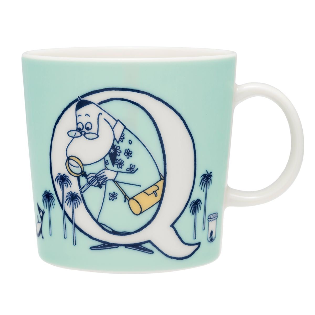A part of Arabia's ABC Mug Collection, this Moomin mug features the "Q" initial drawn by author Tove Jansson and a scene adapted from her original stories and illustrations. Here, Little My finds a box of tropical seeds, and soon, the Moominhouse turns into a lush jungle full of exciting plant species. Hemulen the botanist visits the Moominhouse and examines a carnivorous plant and to everyone's surprise, the plant calms down after Moomintroll plays music. Select your favorite character or personal initial while enjoying all 13.5 ounces of coffee, tea and more. Or, find the initial of a special Moomin fan in your life for the perfect gift. Included is an attached "To" and "From" hangtag.