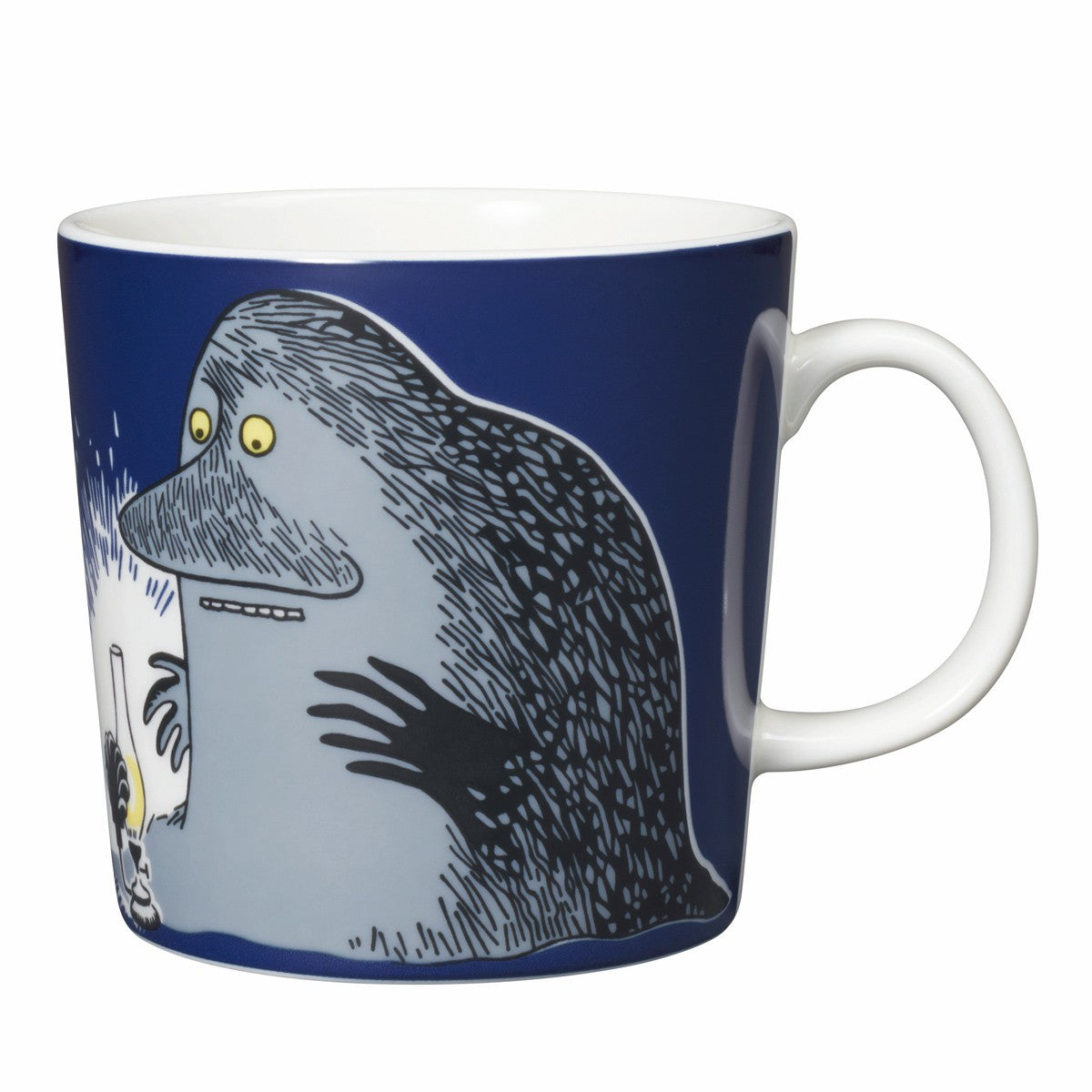 This navy blue mug features The Groke looking at a night light. Moomin-founder Tove Jansson created the original illustration, which appears in the book "Moominland Midwinter." It was then interpreted by Tove Slotte, who beautifully took the classic from paper to porcelain.
