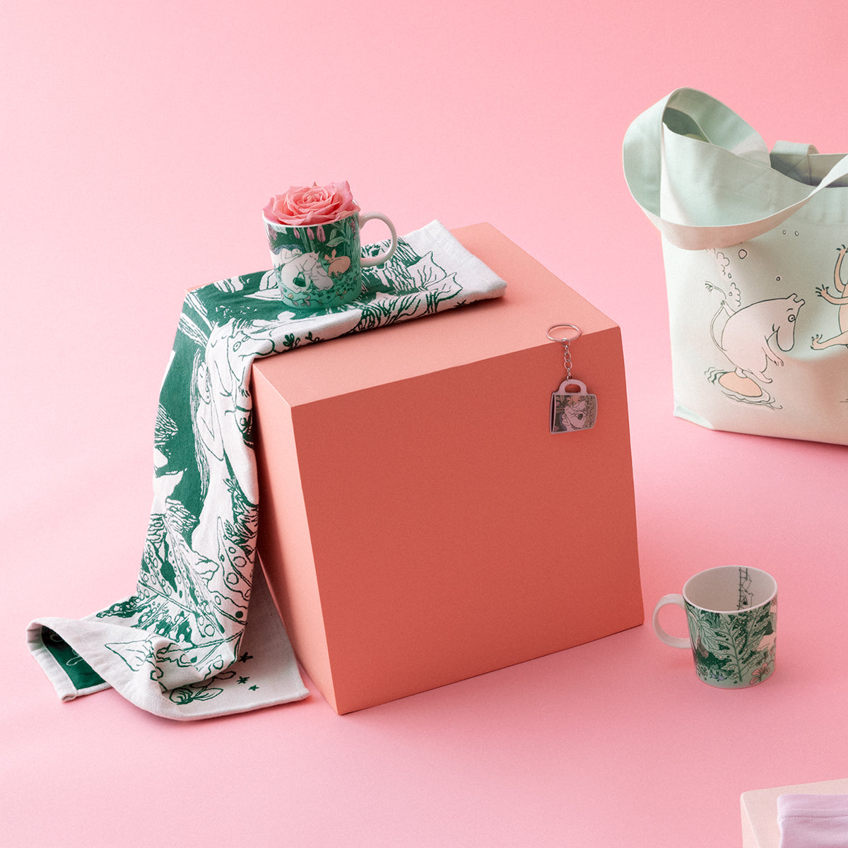 The Moomin’s Day 2025 collection celebrates 80 years since Tove Jansson's first ever Moomin story, The Moomins and the Great Flood. This tea towel by Arabia captures a scene from the same story, where Moominmamma has created a cozy nest in the forest for Moomintroll, Sniff, and a girl named Tulippa as they search for Moominpappa during the great flood. The Moomins are depicted how they were in Tove Jansson's original illustrations from 1945, with narrow snouts and less round features. Made from 100% organic cotton, the Moomin's Day tea towel will be just as handy in the kitchen as it is adorable.
