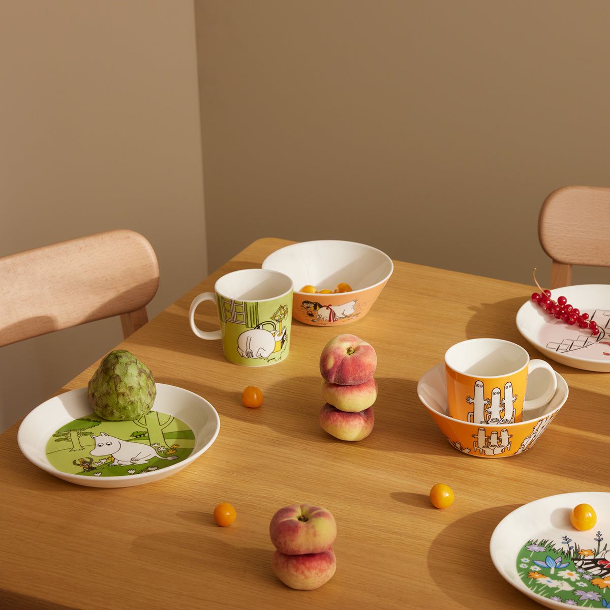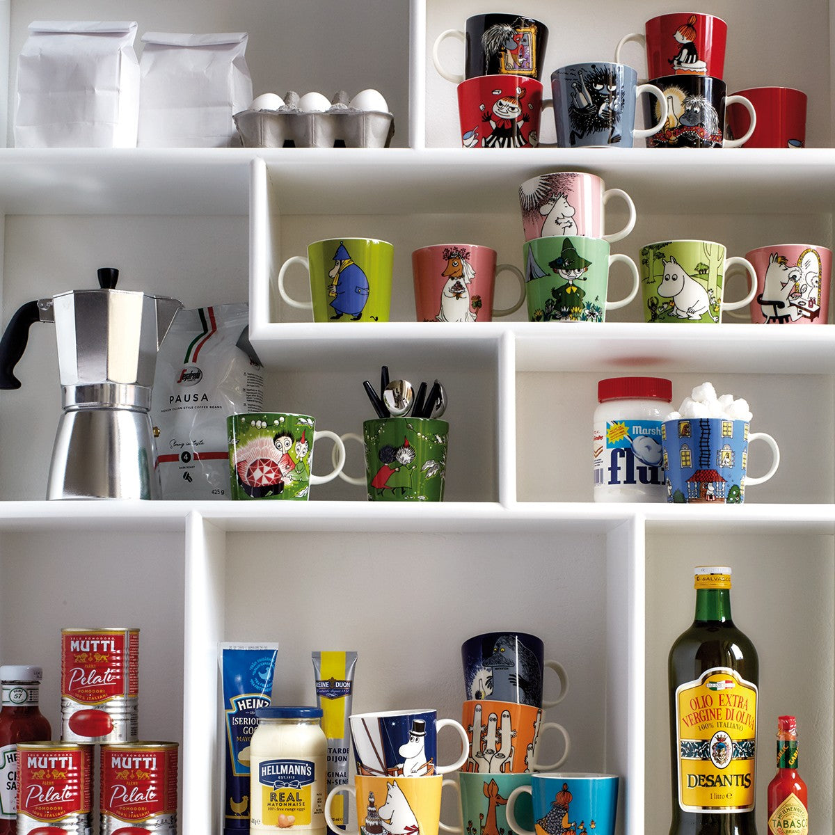 This green mug features one of the most popular characters: Moomintroll . Tove Jansson created the Moomins in 1945, and they have been capturing hearts ever since. Tove Slotte created these illustrations, taking the classic comics from paper to porcelain beautifully.