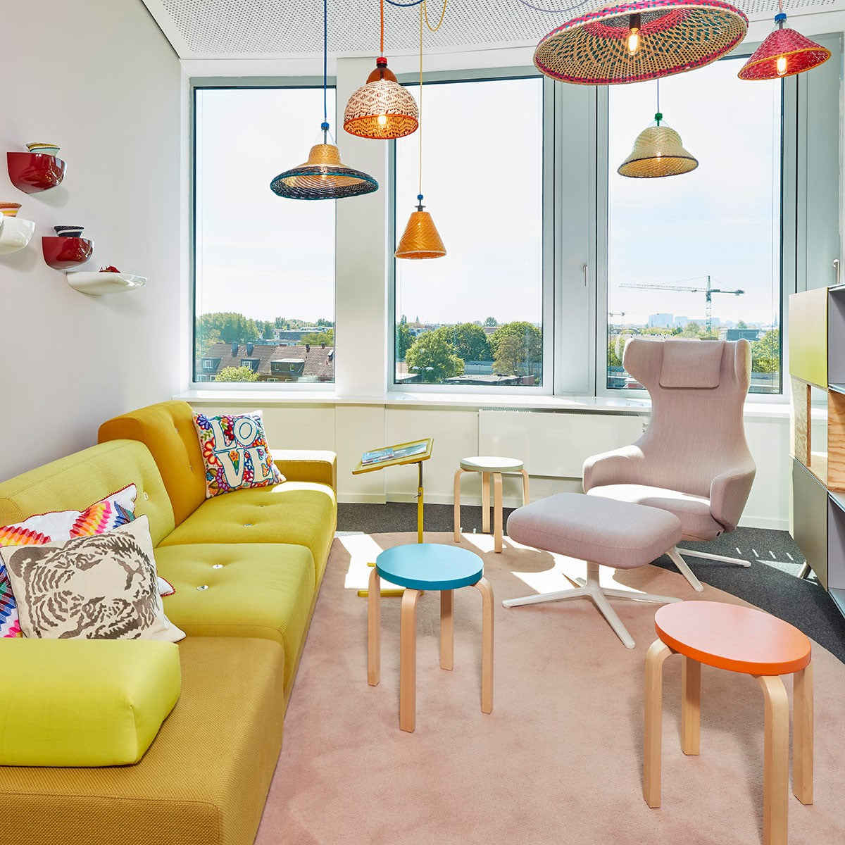 The visionary of renowned Finnish architect/designer Alvar Aalto, the iconic Artek Alvar Aalto Stool E60 turns 80 in the year 2013. The stackable, four-legged stool was built using revolutionary techniques at the time and paved the path for subsequent design classics. Special edition colors taken directly from Alvar's Paimio Sanatorium, the first building he designed that was furnished entirely with his own factory-made furniture, are now available to celebrate this milestone. The yellow of the floors, the green of the walls, the turquoise of the handrails and walls, and the orange, white and black of the furniture of the Paimio Sanatorium inspired this anniversary edition. This four-legged stool consists of a lacquered orange seat and natural birch legs. Designed in 1933, this timeless design is still one of the most famous classics internationally.