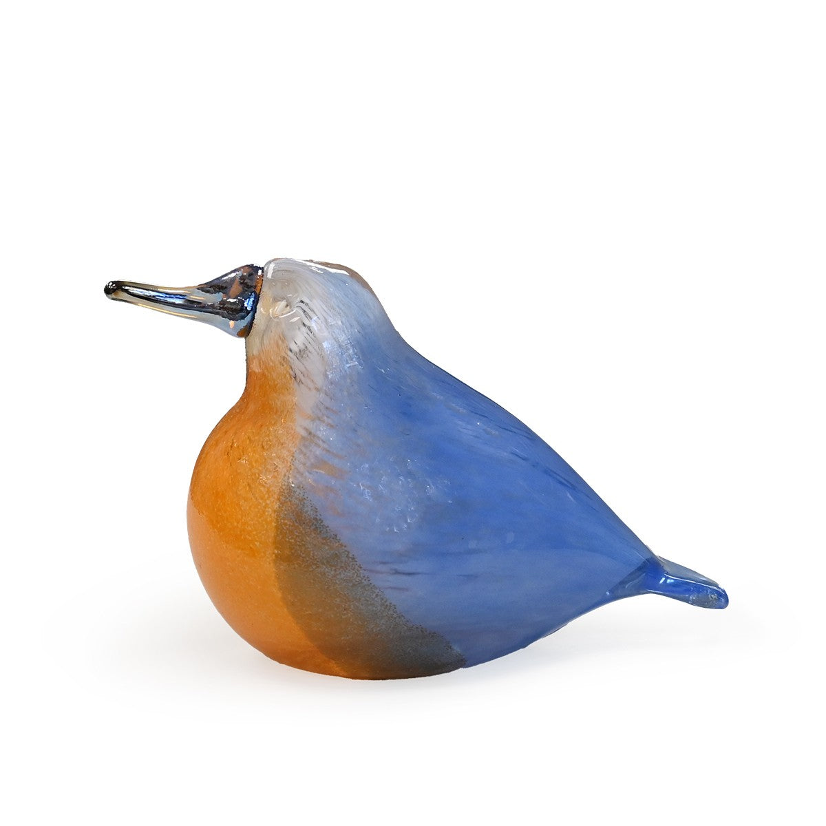 The Kingfisher Bird boasts a powerful silver beak and a vibrant orange chest that fades into a beautiful blue tail, an eye-catching pop of color wherever it lands. The glasswork and coloring give the illusion of textured feathers, authentic to the Kingfisher species. Crafted in Fiskars, Finland exclusively for FinnStyle, the Kingfisher glass bird is designed by artist Tarmo Maaronen and mouth-blown by a small team of skilled blowers. Maaronen was born in 1963 in Urjala, Finland and has been blowing glass since 1979. He worked as a teacher of Scandinavian glass techniques from 1995-1997, until he founded his own glass studio Bianco Blu.