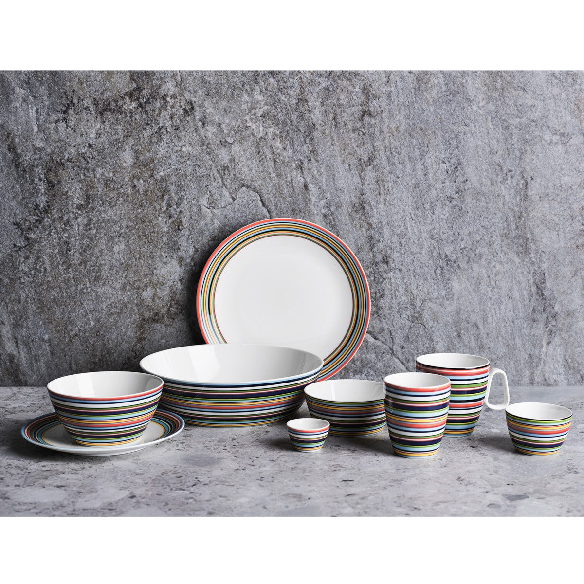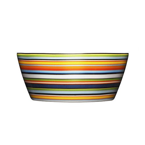 Practical enough for everyday use yet beautiful enough for formal gatherings, Alfredo Haberli's award-winning Origo collection is worth stocking your shelves with; though you won't want this beauty hiding behind a cupboard door. Perfect for brightening up pudding or parfaits, the iittala Origo Orange Dessert Bowl is composed of stripes in a variety of colors and widths for visual interest at the table. Made from lightweight yet durable porcelain, the bowl is freezer, microwave, oven and dishwasher safe to serve you for years to come.