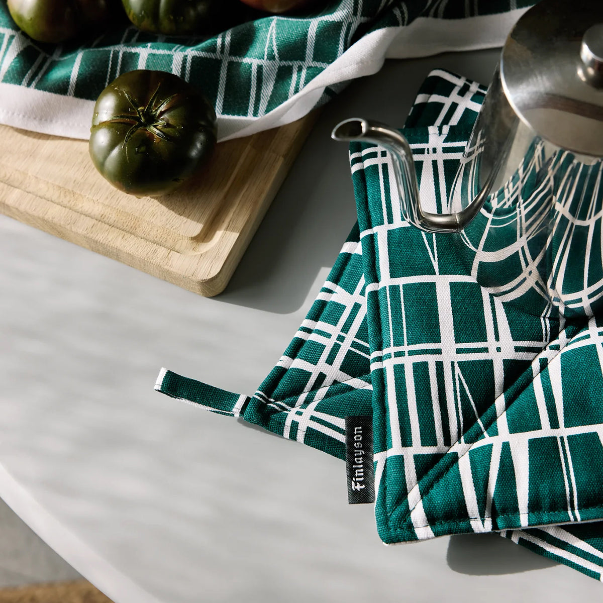 Finlayson Coronna Dark Green / White Pot Holders - Set of 2