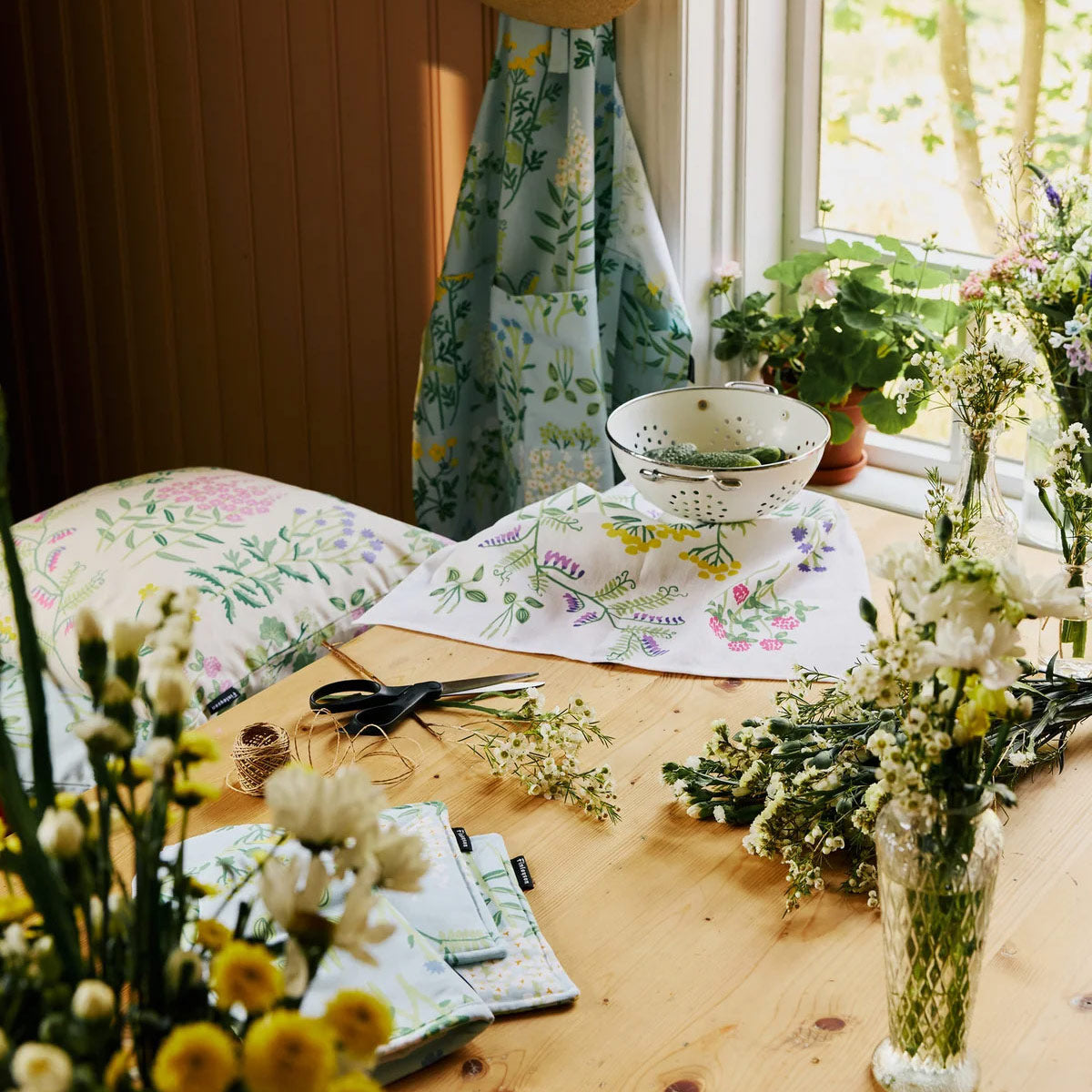 This dreamy print will add instant charm to any couch, sofa, bed, chair, bench and more. The Joutomaa pattern features blooming wildflowers, sprigs and herbs in pretty pink, purple, green and yellow, which illuminates atop a neutral off white backdrop. The Finlayson Joutomaa Throw Pillow is made from 100% soft yet durable cotton, and includes a discreet zipper on the back for easy removal of the cushion insert. Designer Hanna Forsman aims to challenge the human tendency to value nature solely for its utility in her pattern - so perhaps, stop and smell the flowers!