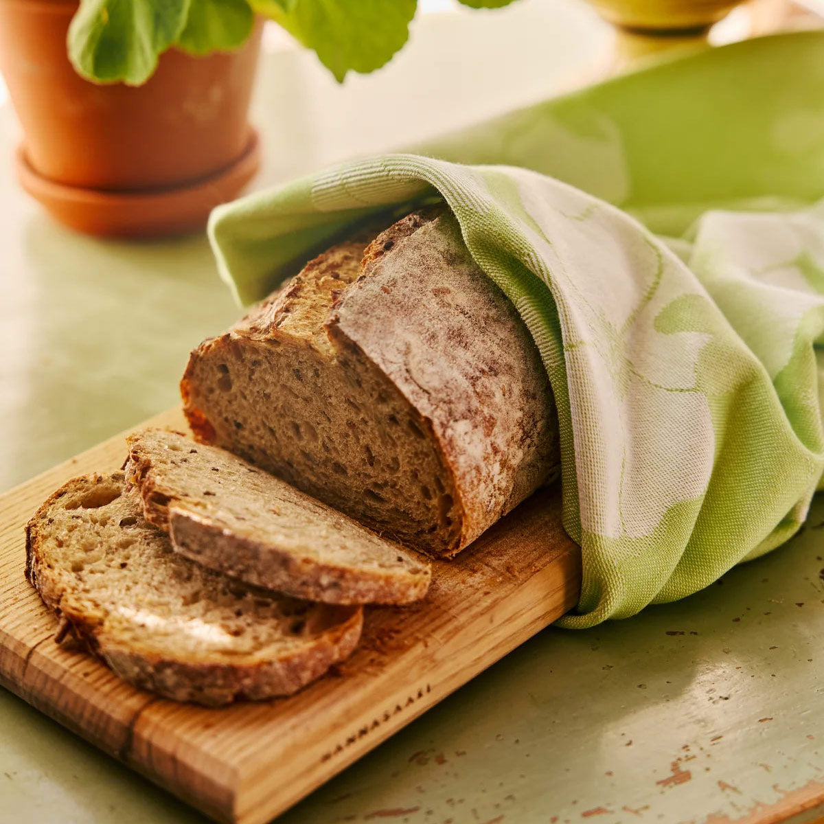 These versatile Finlayson tea towels will be a handy and stylish helper in the kitchen. Decorated with the Rosa pattern by Osmi Koskinen, the towels feature a jacquard-woven floral pattern in light green and white inspired by beach roses. The set of two tea towels are made from 100% cotton in a rib weave, offering a thick and durable material for all jobs in the kitchen. When not using to dry hands, dry dishes, cover warm pastries, and more, the Finlayson Rosa Light Green Tea Towel Set includes attached hanging loops for a pretty presentation.