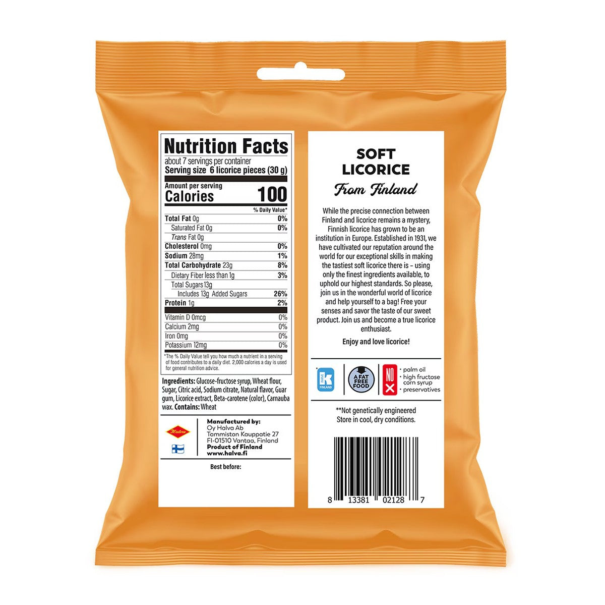 Finland is well-known for licorice, and Halva is known as one of Finland's best licorice makers since 1931. These bite-sized treats by Halva have a soft texture and sweet mango flavor, which is made from natural flavors and color. This makes a great gift for a fan of Finnish licorice, or, a tasty treat for your own indulgence!