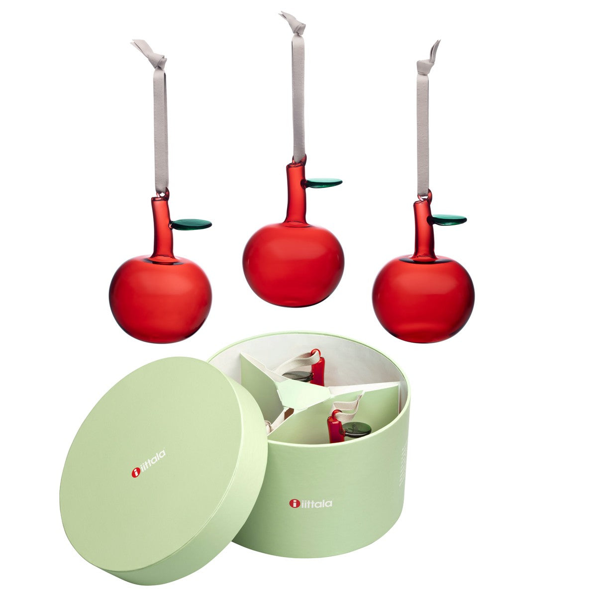 iittala Red Glass Apple Ornaments - Gift Set of 3