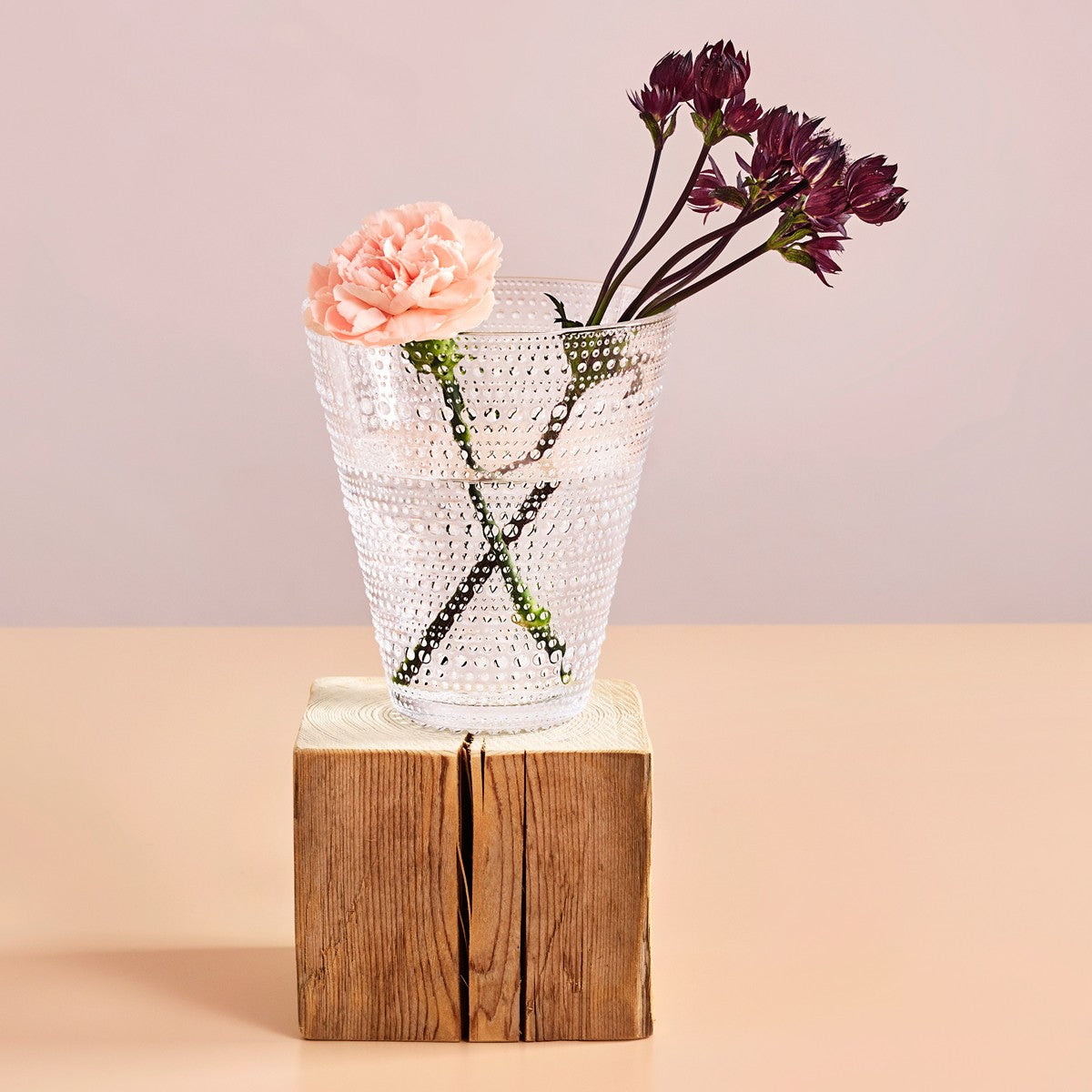 Drink up, beautiful blooms. This vase is a playful take on Oiva Toikka's famous Kastehelmi drinking glasses. With the same shape but in a much larger scale, the design can now house the stems of your favorite flowers. It shares the same bubbled "Dewdrop" detailing with the other items in the timeless collection, which was introduced in 1964.