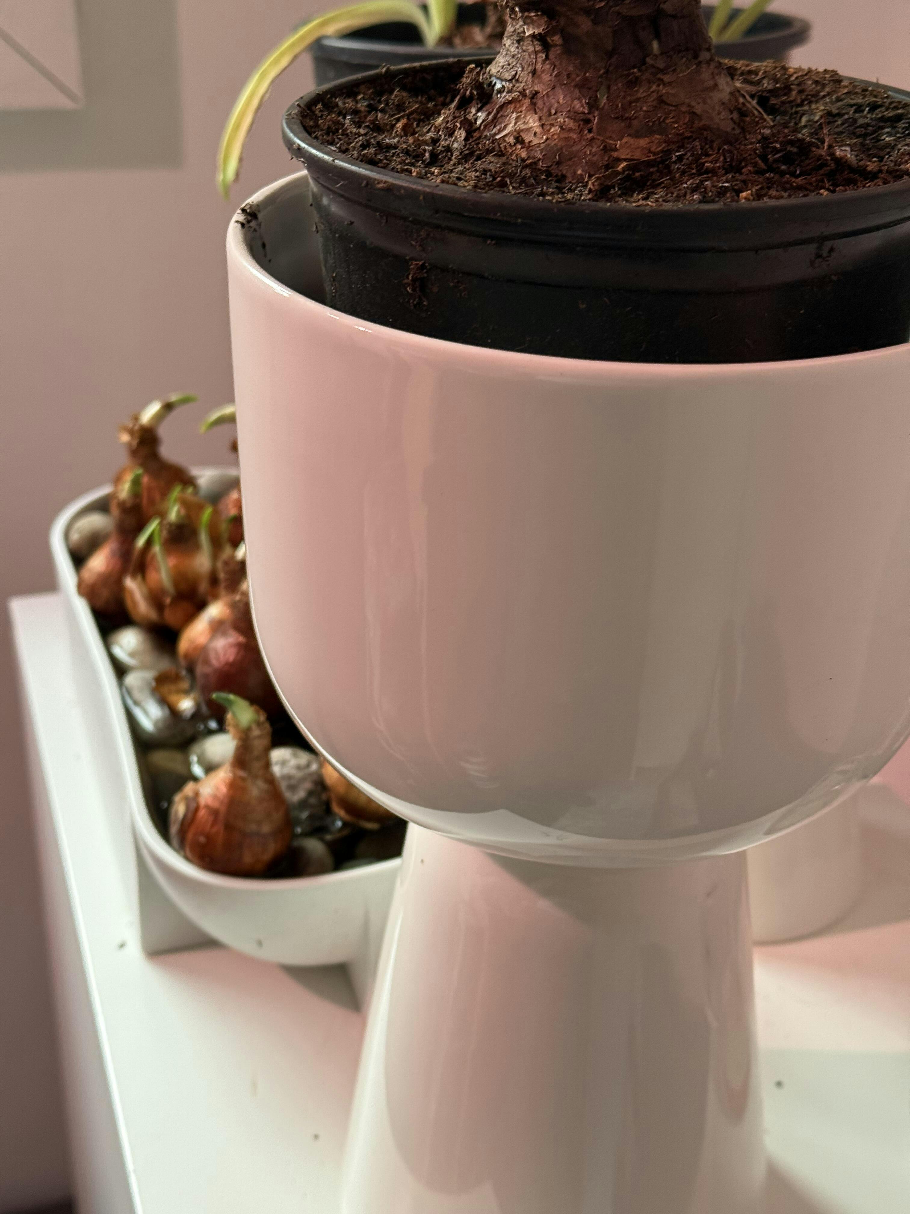 Houseplants are becoming a home decor essential for their lush beauty, health benefits, and ability to bring a room to life. Put your prized plants on a pedestal with the Nappula pot. Made from ceramic, it's the perfect home for cacti, succulents, ivy, and more. Designer Matti Klenell was inspired by the legs of a peculiar table he came across at the Nuutajärvi glass museum to create the Nappula candle holders, and these planters fit seamlessly into the clean-lined, classic-meets-contemporary collection. The bowl-like upper portion holds the greenery while the hollow bottom acts as a stable stand that can be placed on the floor, a table, or stool. Wearing a crisp white hue, this is the shorter of two available heights.