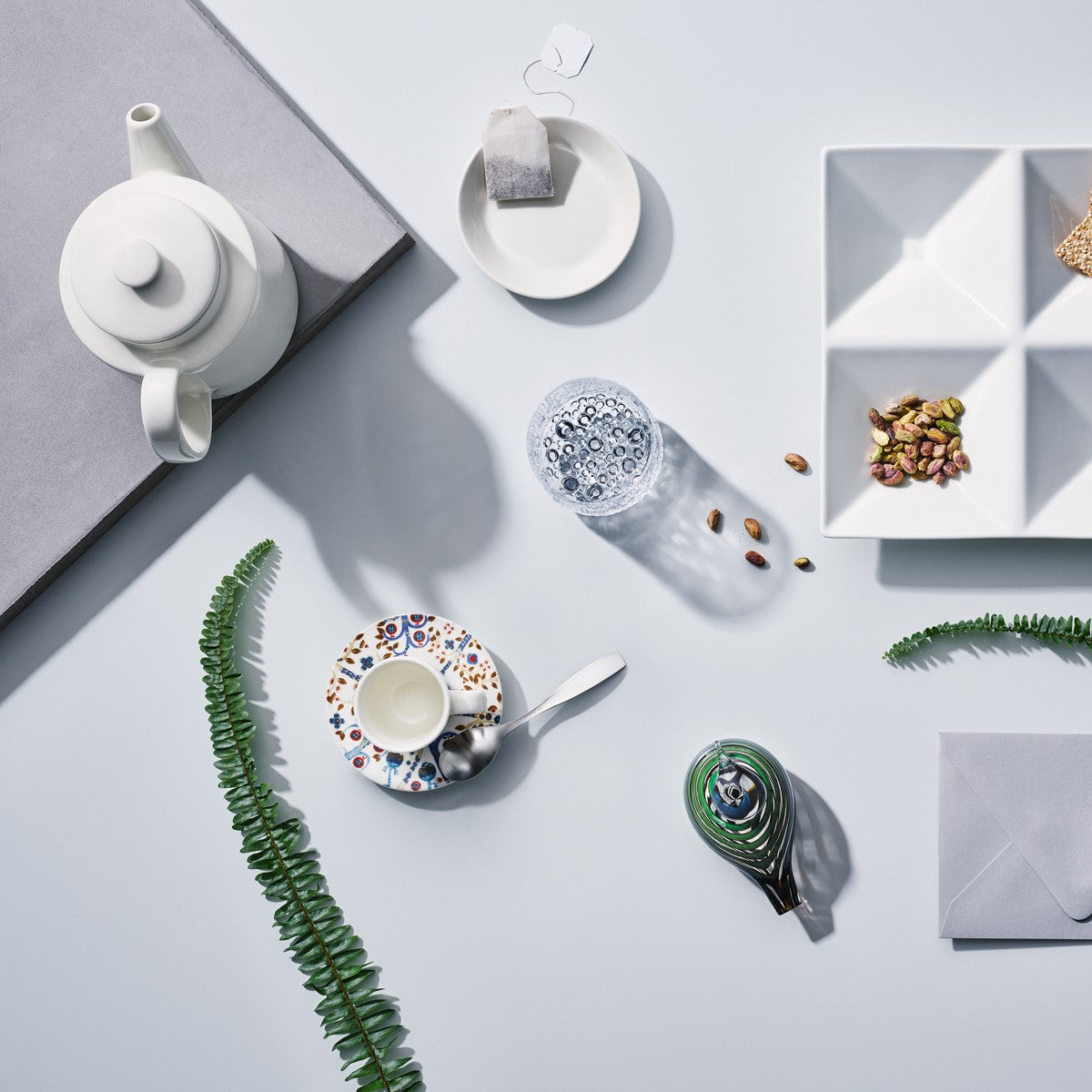 A chic addition to the Taika collection, the delectable espresso cup and saucer make enjoying a cup of espresso effervescent. The white backdrop blends perfectly with other iittala collections, making this piece perfect for adding a splash of excitement to your place setting. Or, mix and match with other Taika pieces for a striking and awe-inspiring place setting.