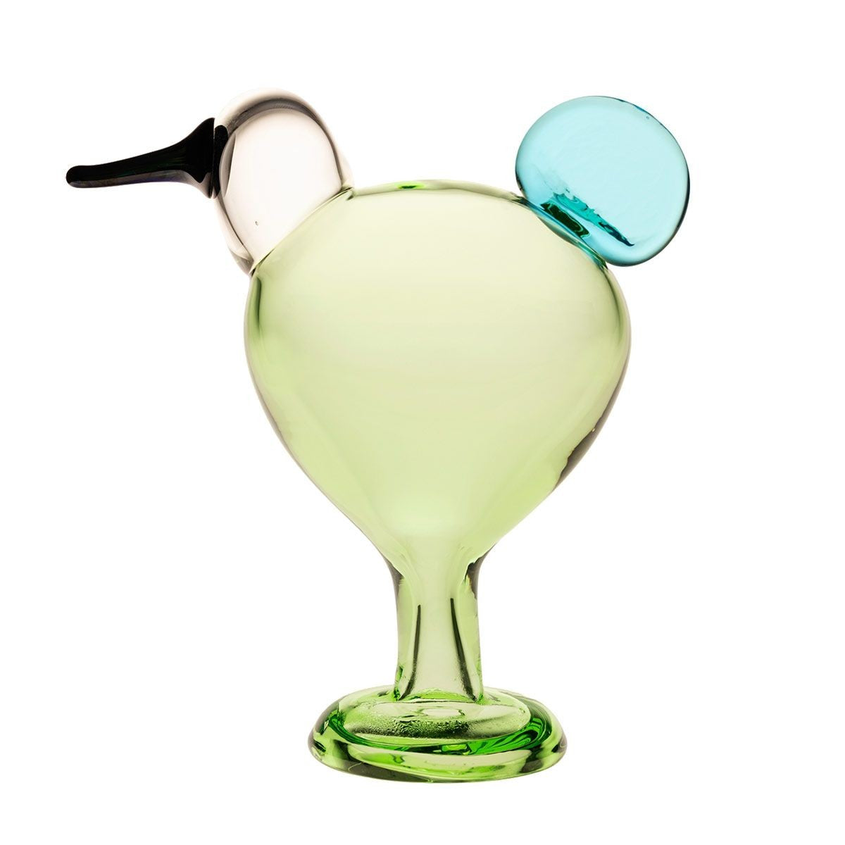 The limited-edition and numbered Sulo features a smooth, rounded body and a playful stature to showcase Toikka's expertise in blending artistry with nature-inspired design. Bringing in a cheerful splash of color with its stunning apple green transparent glass body, it is contrasted by a beautiful sky blue tail and dark, almost iridescent, beak. The bold character of the large iittala Toikka Sulo will accent any windowsill or colorful home interior, while also making a lovely gift for a Finnish design fan or bird enthusiast.