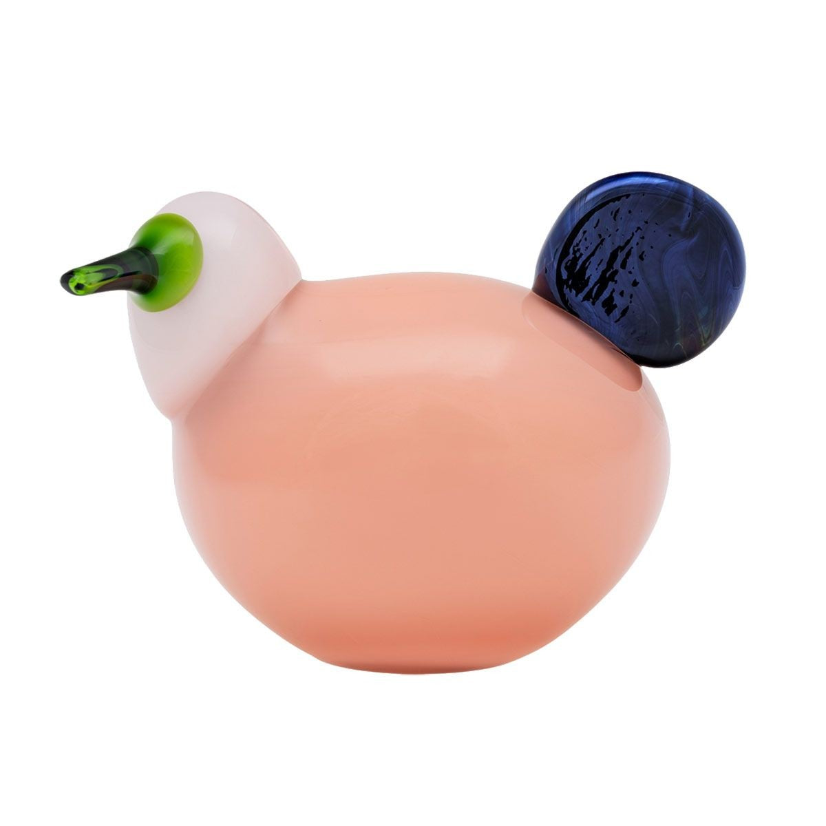 The limited-edition and numbered Sorja is a striking work of art that brings beauty and character to any space. In an elegant salmon pink hue, the iittala Toikka Sorja Glass Bird has a unique silhouette that blends modern shapes with Toikka's signature design. The rounded body is contrasted by a milky off white head and a stunning green beak. On the opposite side, the tail features an almost iridescent grey-blue glass color. The playful shape and bold character of the iittala Toikka Sorja will accent any windowsill or colorful home interior, while also making a lovely gift for a Finnish design fan or bird enthusiast.