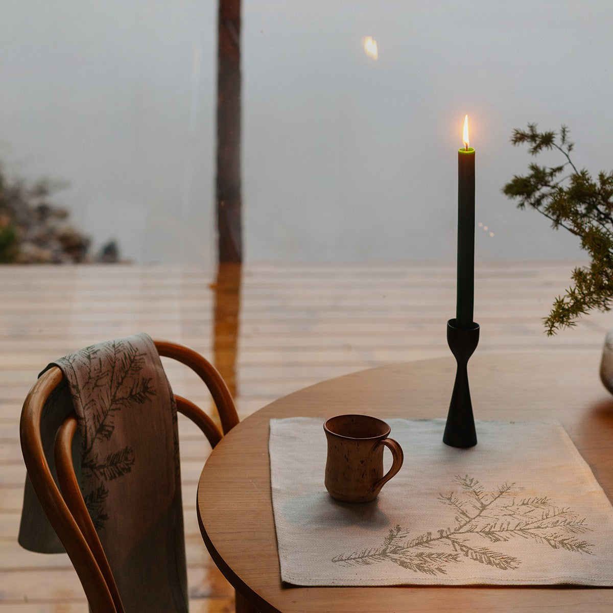 Lapuan Kankurit teamed up with award-winning artist and designer Teemu Järvi to create this woodsy placemat. Inspired by the artist's lifelong love of the wilderness, Havu translates to "coniferous," and this kitchen accessory brings a touch of Finland's wintry forests to the table this season. Made in Finland from smooth, high-quality cotton and linen, festive white and green threads give the appearance of a heathered look for stunning texture and dimension. The Lapuan Kankurit Havu Placemat can also be used interchangeably as a tea towel with its lightweight yet durable material.