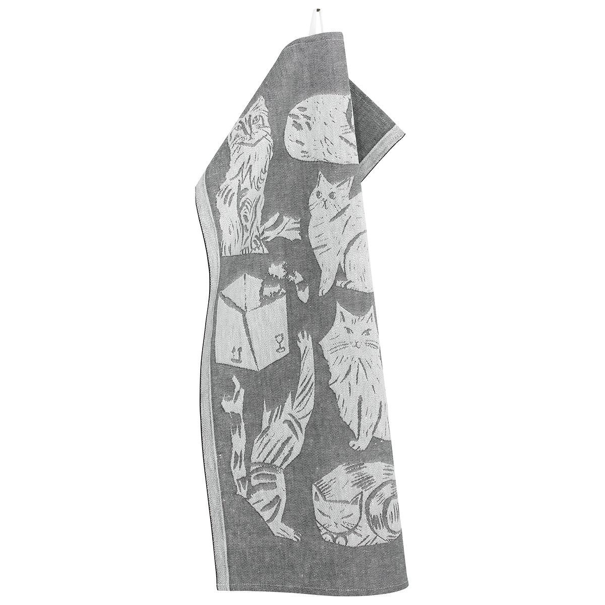 Lapuan Kankurit Kissanpaivat Dark Grey / White Tea Towel