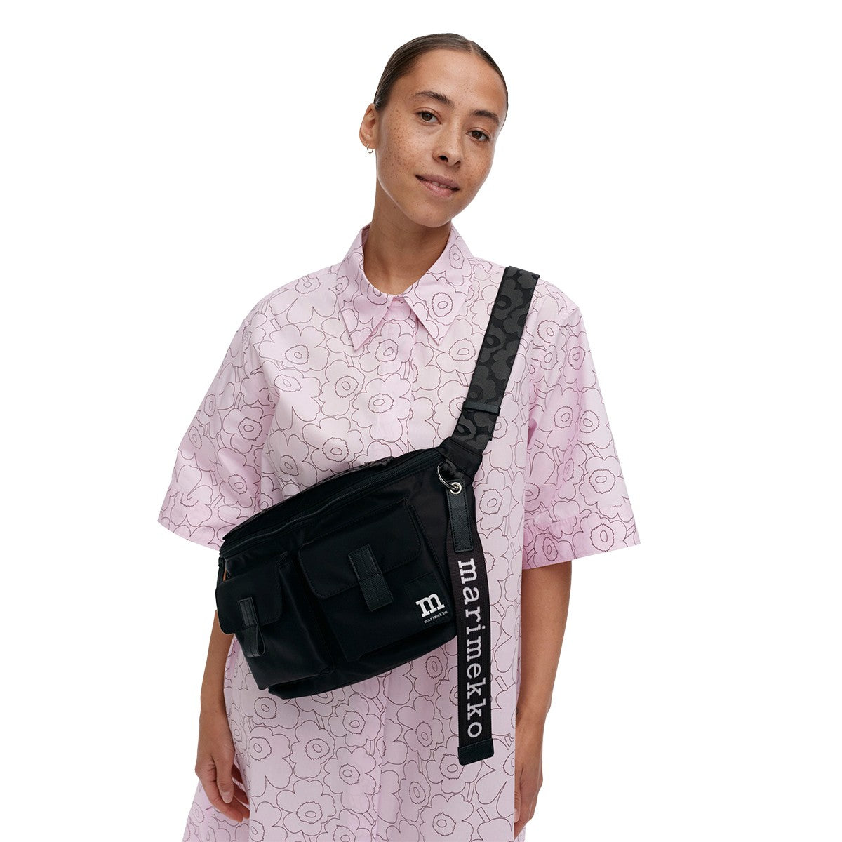 Marimekko Solid Black Medium Sling Shoulder Bag w/ Unikko Strap