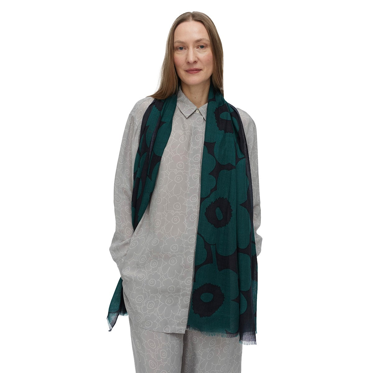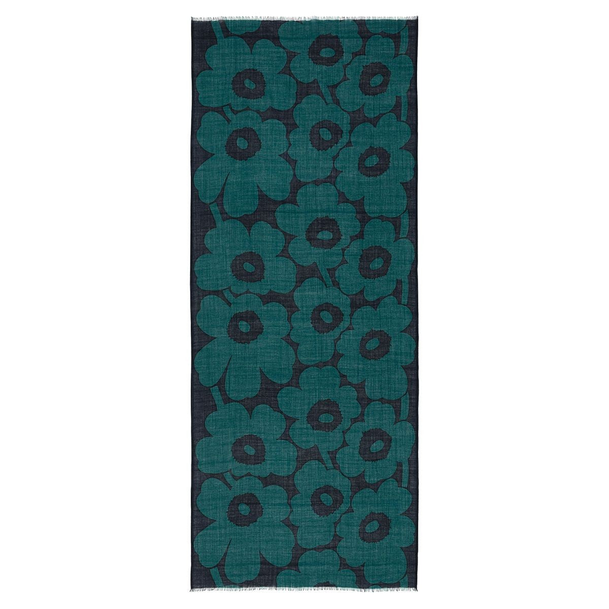 Marimekko Fiore Unikko Dark Green / Navy Sheer Wool Scarf