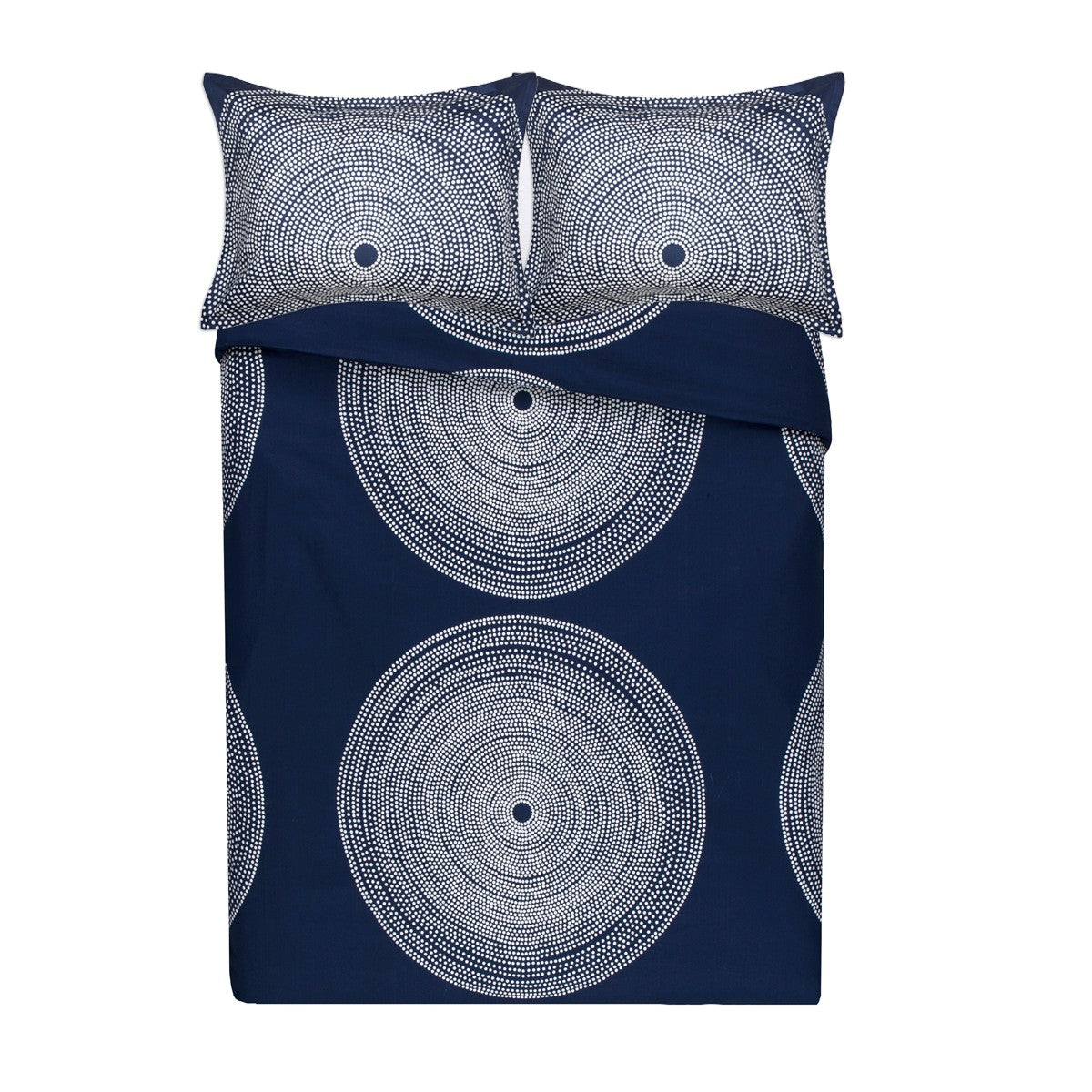 The Marimekko Fokus Bedding will be the focus of your bedroom with its eye-catching, large-scale design by Anna Danielsson. Tiny white dots form concentric circles atop a navy blue background for a simple yet striking statement. Made from 100% cotton percale in 200 thread count, the pieces in this collection are soft, irritant-free and machine washable.