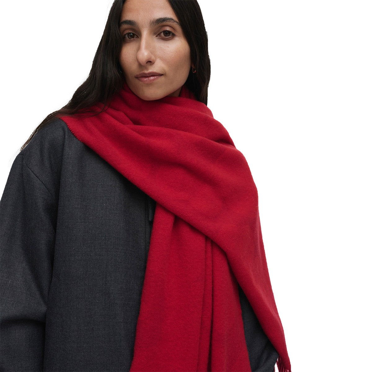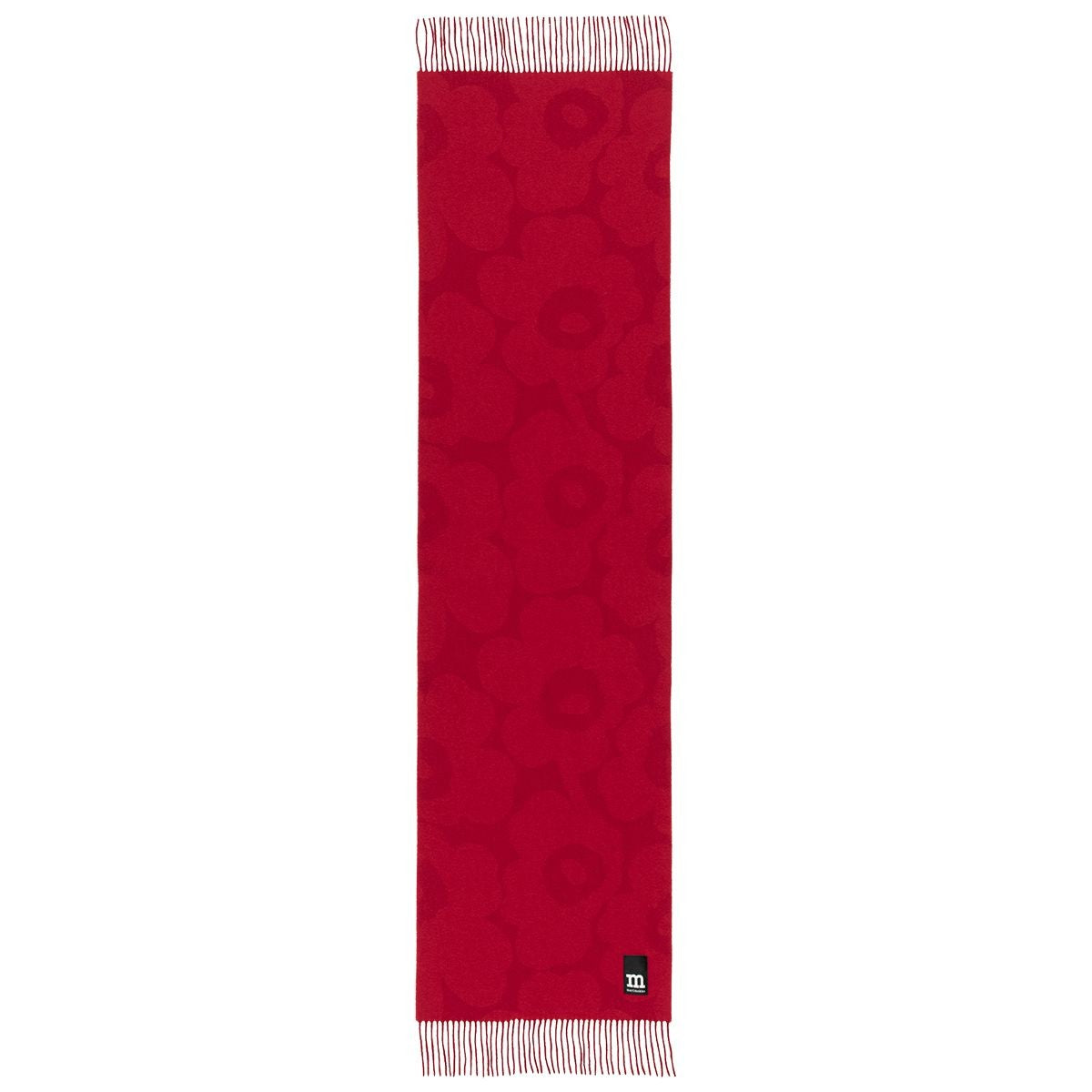 Maija's Isola's beloved poppies bloom just as boldly in the cold with the Marimekko Identtinen Unikko Scarf. Made of a wool and polyamide blend, the Marimekko scarf ensures warmth and coziness when wrapped around the neck or over the head, while the eye-catching red makes any ensemble pop with color. The Marimekko Identtinen Unikko Scarf is finished on each end with stylish fringes and it features the Marimekko logo patch.