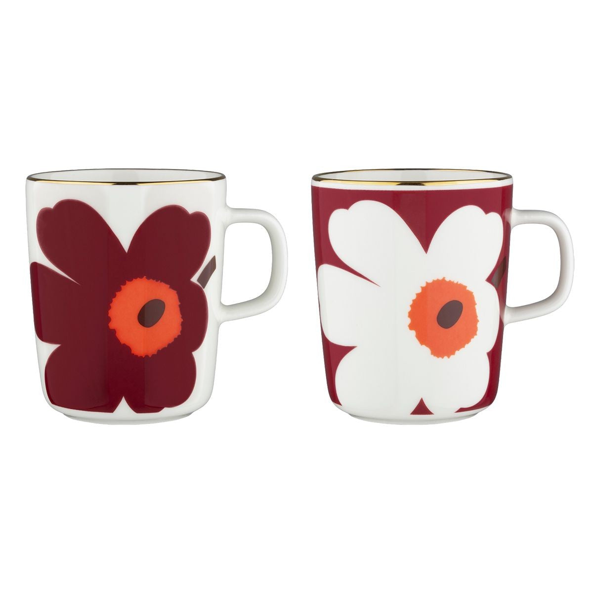 Marimekko Juhla Unikko Dark Red / White / Gold Mug Set