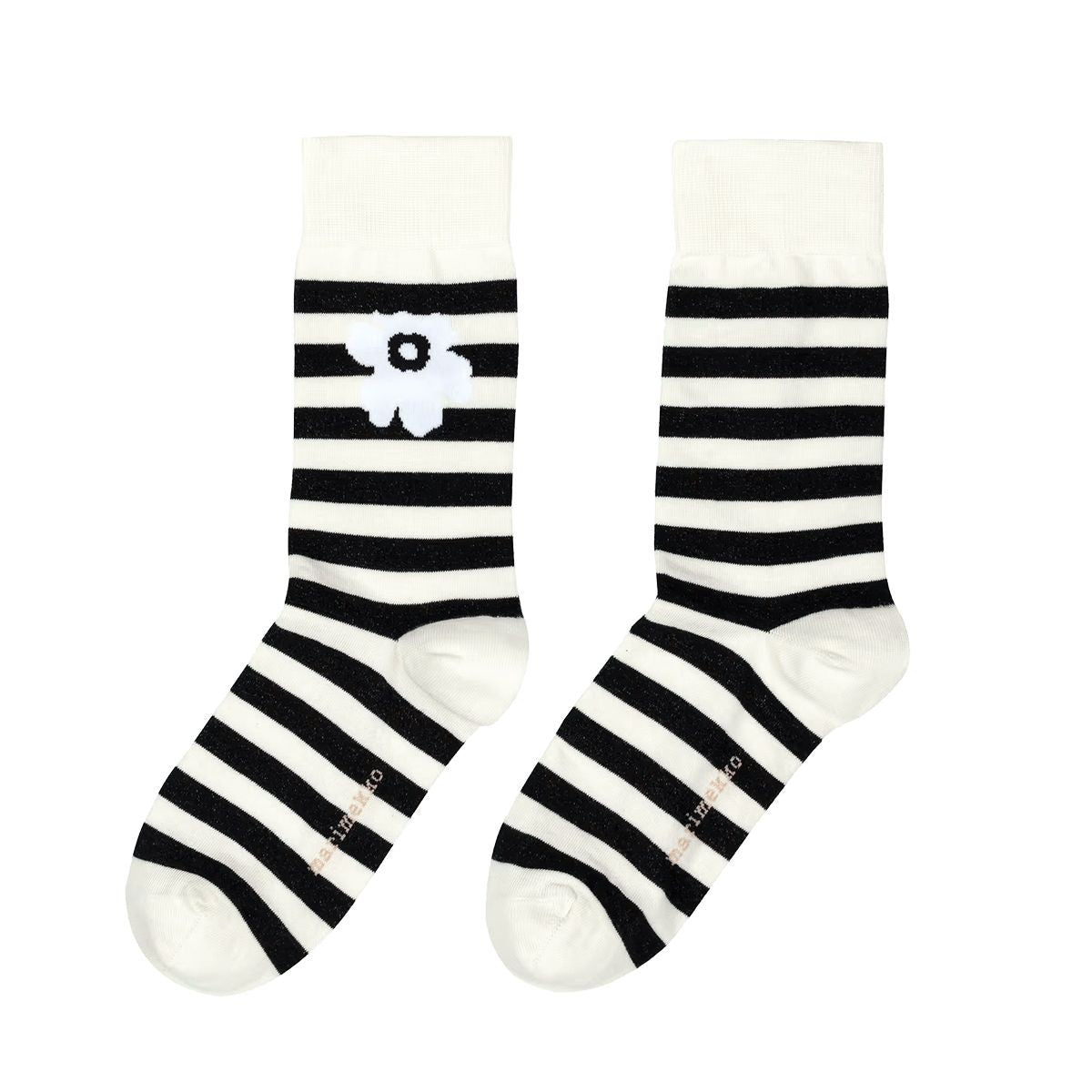 Marimekko Kasvaa Tasaraita Unikko Black / White Socks