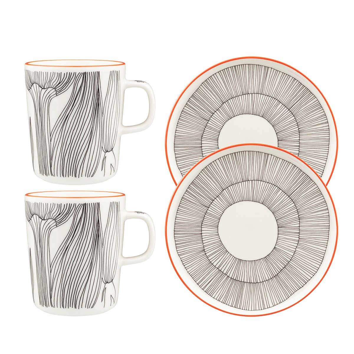 Marimekko Kukat Puhkeavat White / Black / Orange Breakfast Set - Set of 4
