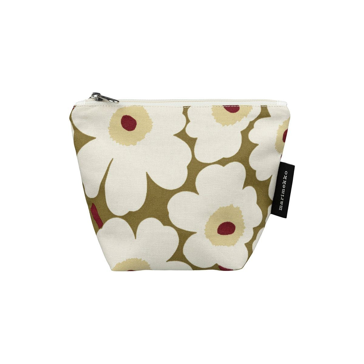 Marimekko Unikko Cream / Olive Green / Burgundy Small Kait Cosmetic Bag