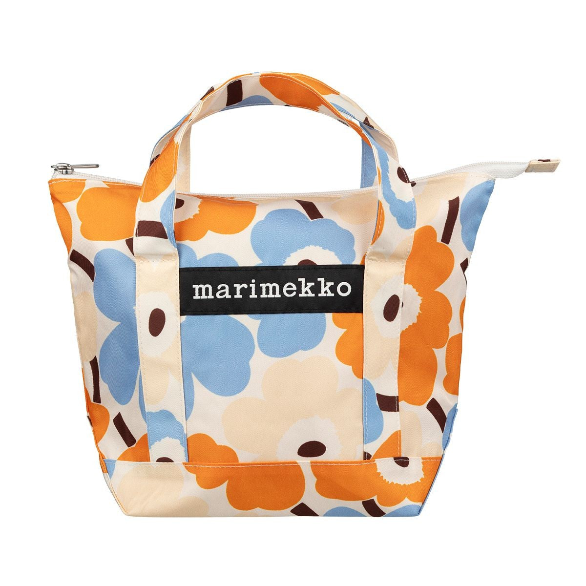 Maija Isola's Unikko pattern has delighted since its 1964 debut and proves just as timeless today. Here, it blooms across this Marimekko Kampsu Cosmetic Bag in an energetic and vibrant orange, blue and cream colorway. The bag has a zipper closure, two sturdy handles, and two open pockets on the inside. The roomy interior can hold a plethora of your essentials, including compacts, hair brushes, lipsticks, and more. It's made from 100% polyester, meaning it can be easily wiped clean with a cloth as needed.