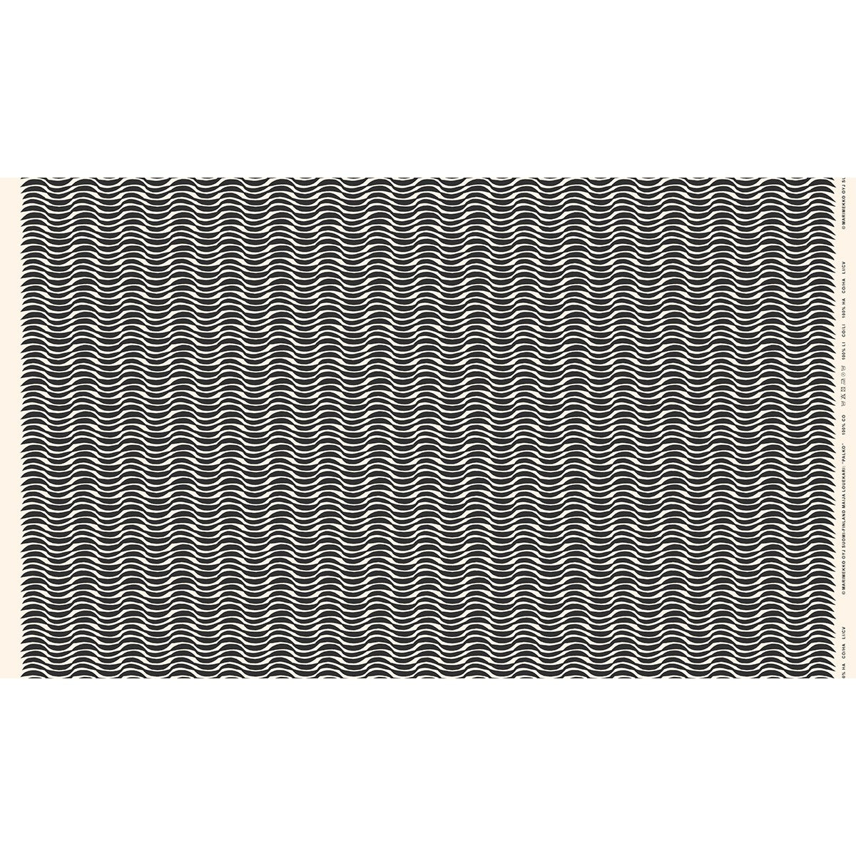 Fittingly named Palko (Pod), this stripy pattern by Maija Louekari was inspired by the shapes of arranged pea pods. Atop 100% cotton Marimekko fabric, the neutral charcoal and off white colorway will accent any home décor or fashion project while remaining bold with its hypnotic and wavy stripes. Perfect for tablecloths, curtains, dresses and more, the Marimekko Palko fabric is machine washable and made in Finland.