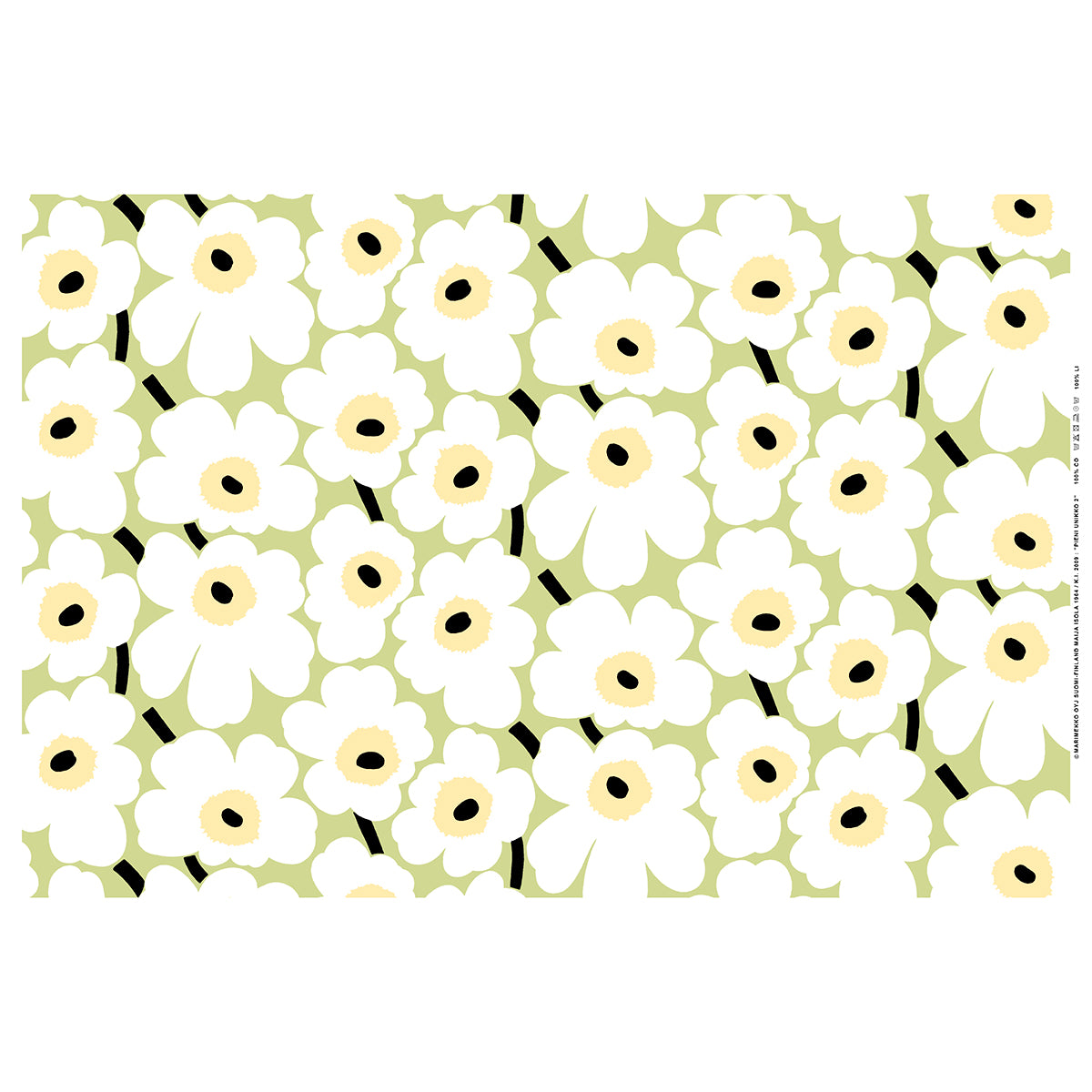Specifications for Marimekko Pieni Unikko Pear Green / White / Sand Cotton Fabric