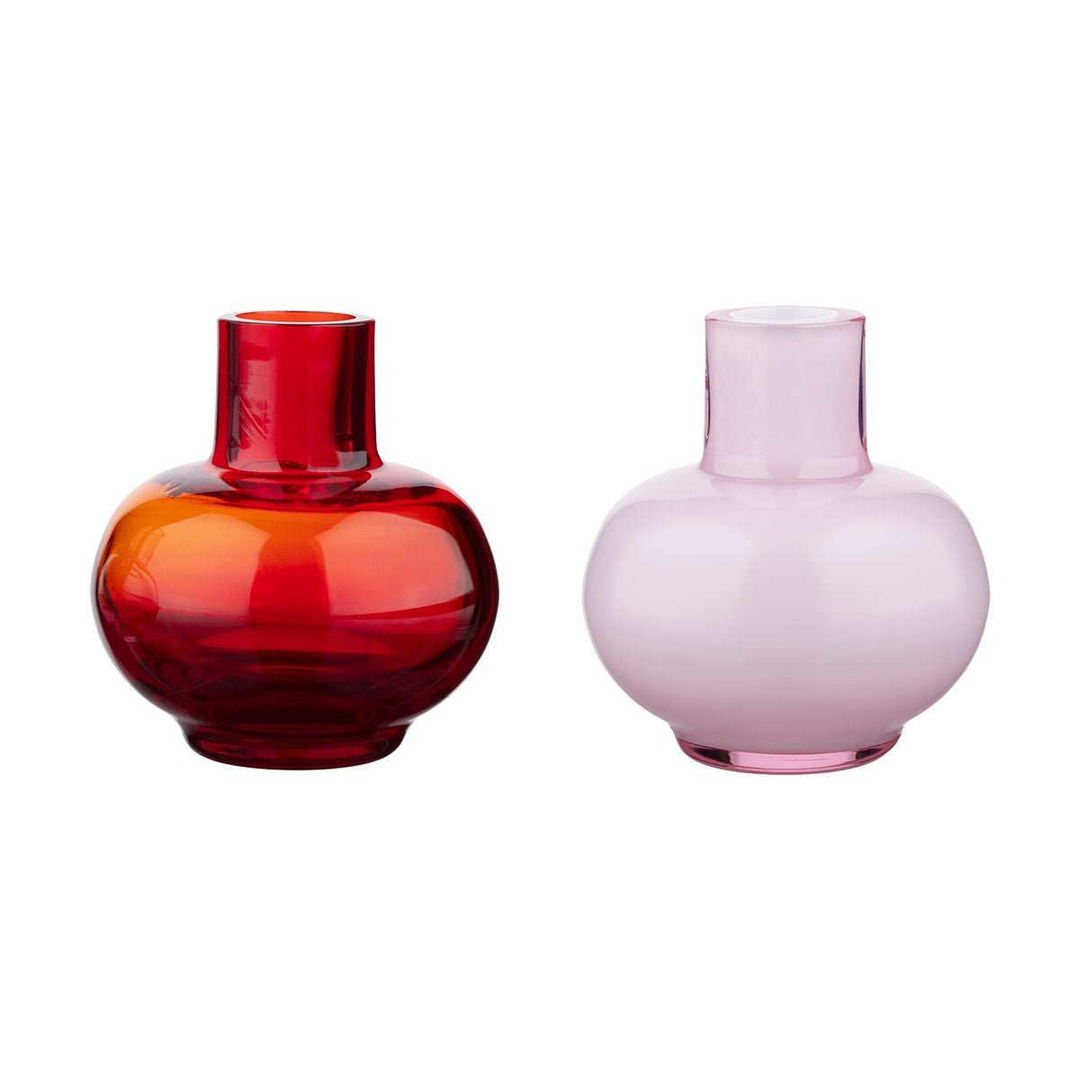Designed by Carina Seth Andersson, this vase by Marimekko is a miniature piece of art. Its size allows you to hold small single-stemmed flowers, sprigs, or reeds all year round. The timeless and modern shape makes it versatile for many types of styles, and even beautiful empty as a standalone piece or part of a vase collection. Crafted from mouth-blown glass, the pretty pink mini vase is opaque, while the vibrant red is transparent for unique contrast.
