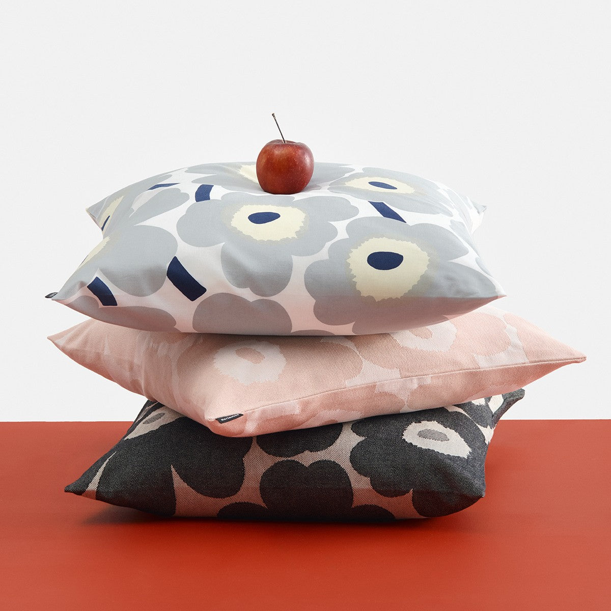 Maija Isola's Unikko (Poppy) pattern has delighted since its 1964 debut and proves just as timeless today. Atop this Marimekko throw pillow, the joyful pink poppies sit atop a lighter, pale pink backdrop and are scaled down to pieni (small). The Marimekko Pieni Unikko Throw Pillow will become the centerpiece of any interior and sit beautifully atop a couch, bed, accent chair, bench and more. Made from a cotton/linen blend and woven with a jacquard knit, the machine-washable pillow conveniently hides a discreet side zipper for easy removal of the cushion insert.