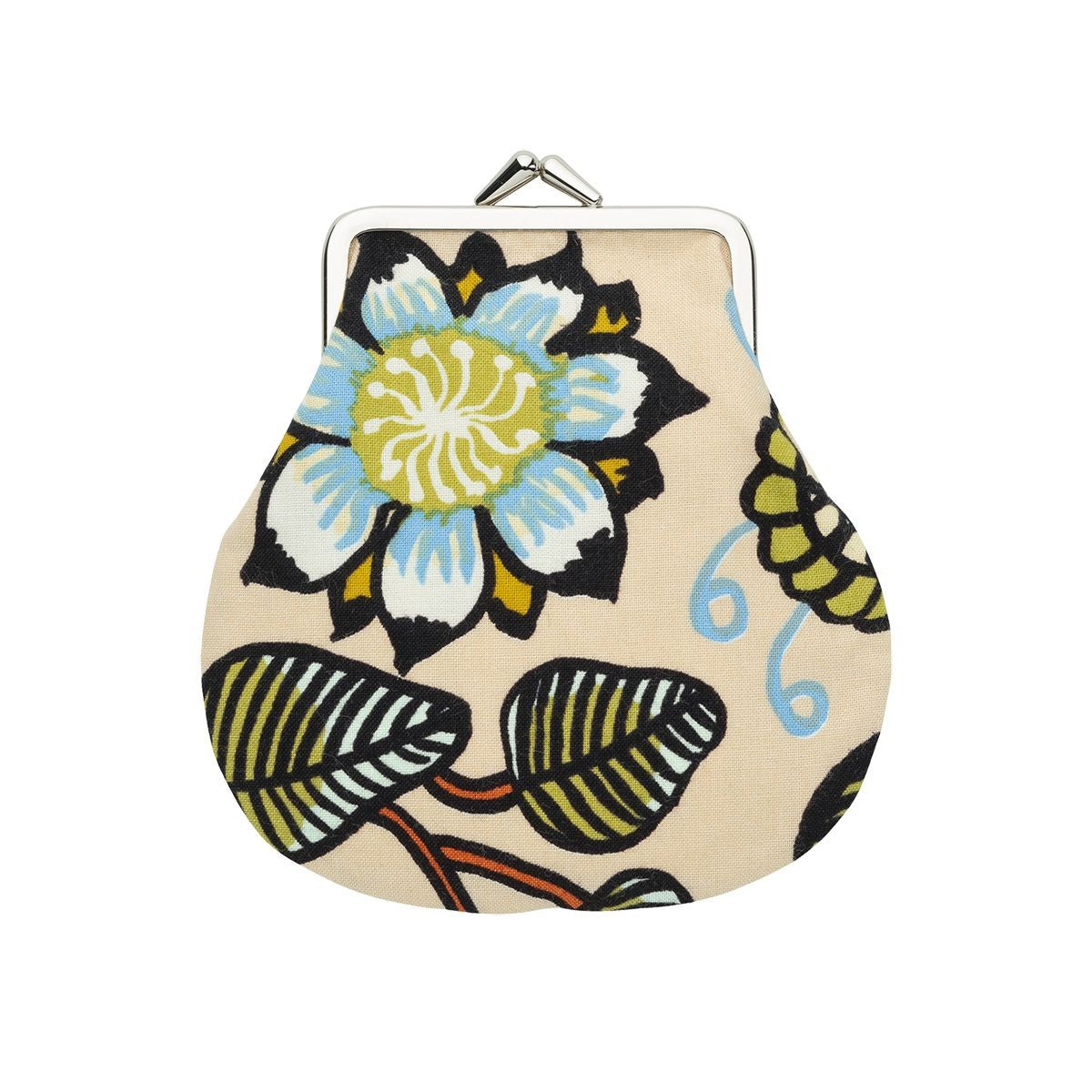 Combining modern florals with vintage appeal, Erja Hirvi's lush Tiara pattern brings in the beauty of nature to any interior. Plants and flowers vine across this Marimekko coin purse in sun-kissed hues of orange, green, and blue, which illuminate against a light orange backdrop. With an orange interior lining, the hand-held size can fit coins, cards, cash, toiletries and other small treasures. Made in Finland from 100% cotton fabric, the Marimekko Tiara Small Coin Purse conveniently snaps shut with a metallic clasp to keep your items safe and secure.