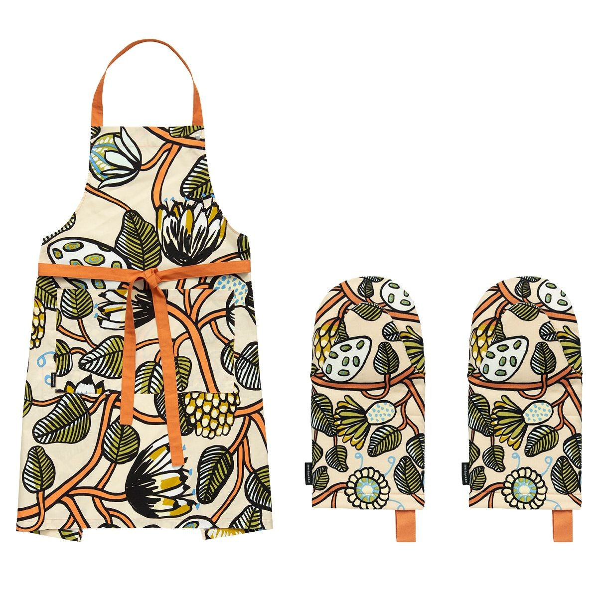 Marimekko Tiara Orange / Green / Blue 3pc Oven Mitt & Apron Set