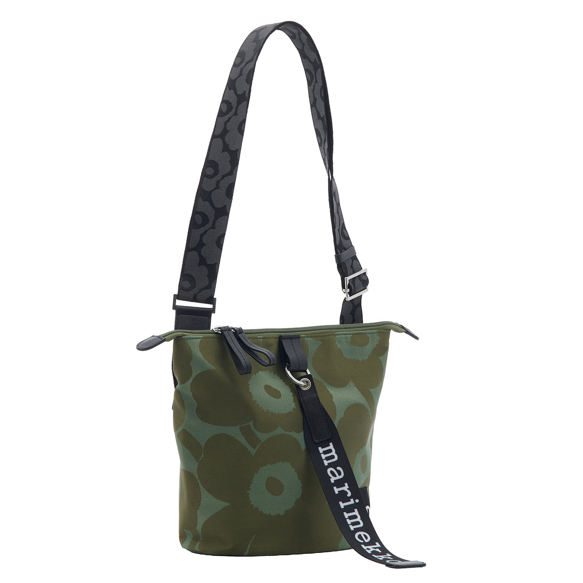 As the name suggests, this Marimekko shoulder bag easily carries all of your everyday essentials. Decorated with Maija Isola's famous florals in gorgeous green, the bag will add a pop of print and color to any ensemble. The exterior includes sleek leather details, a handle, a detachable Marimekko keychain, and a small slip pocket on the backside. Open the zipper to find a roomy interior with an additional slip-in pocket for essentials. The Marimekko Unikko Carry All Shoulder Bag includes an adjustable strap that continues the Unikko pattern, while the thick, jacquard-knit polyester material invites long-lasting use for years to come.