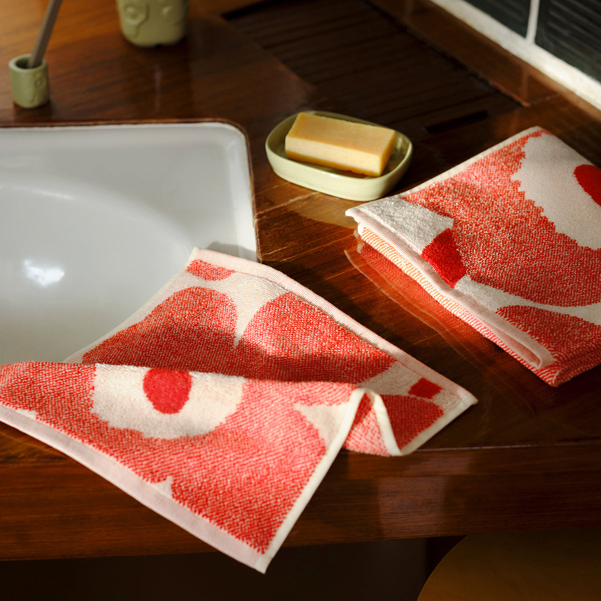 Marimekko Unikko Orange-Red / Off White Washcloth