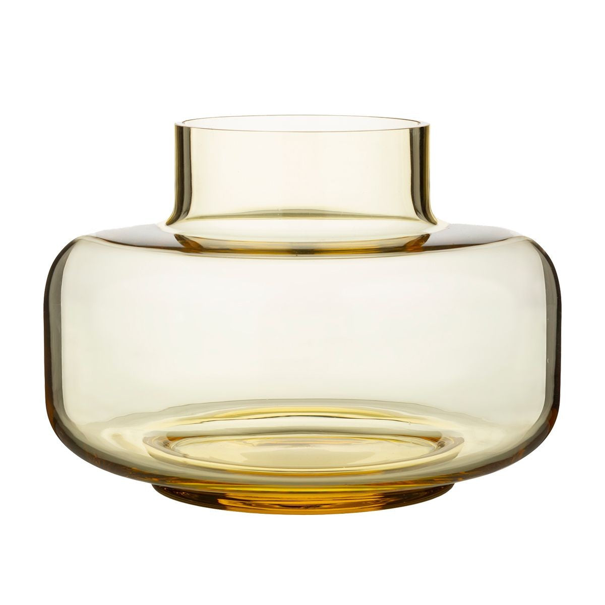 The Marimekko Urna Vase designed by Carina Seth Andersson is a large glass sculpture suited to beautify any room of your home. Although the graceful form stands effortlessly alone, it is most stunning when holding dramatic tree branches or long-stemmed blooms. The base carries a stamp of the Marimekko logo to ensure authenticity. The pale yellow hue is playful yet calming, and will look gorgeous sparkling in the sunlight.