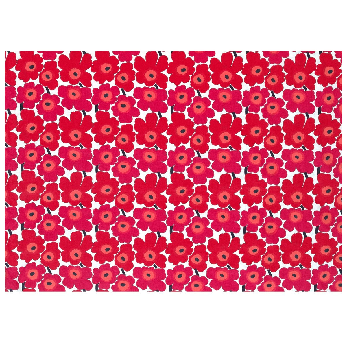 Marimekko's iconic Unikko (Poppy) print in miniature shows that small can still be bold. Marimekko Mini Unikko is just right for smaller scale productions such as pillows, bedding or skirts. Printed in Finland on 100% cotton, this fabric is easy to work with and machine washable.