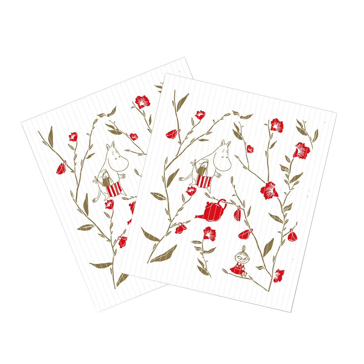 Moomin Flower Tea Party White / Red / Green Dishcloth - Set of 2