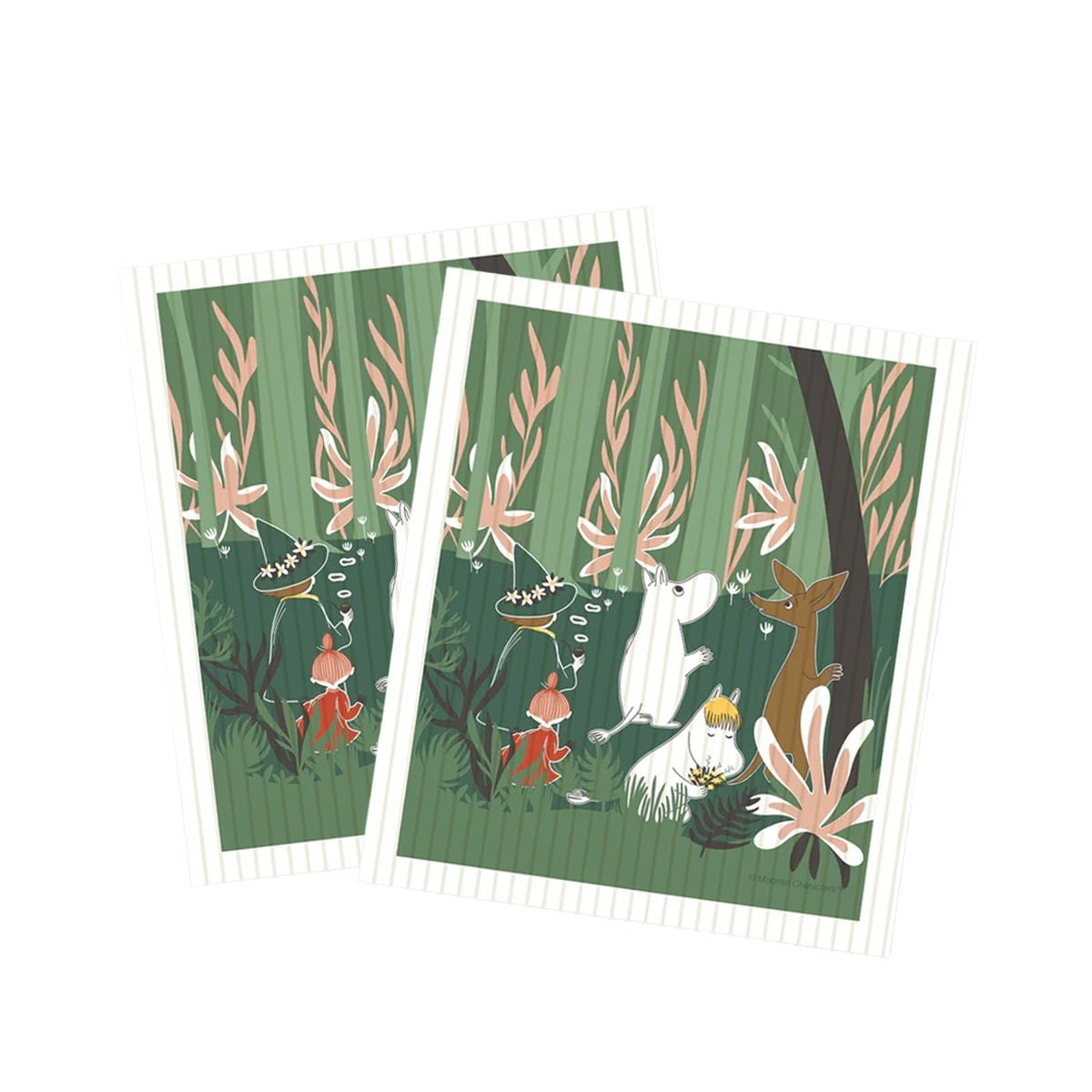 Moomin Forest Green Cellulose Dishcloth - Set of 2