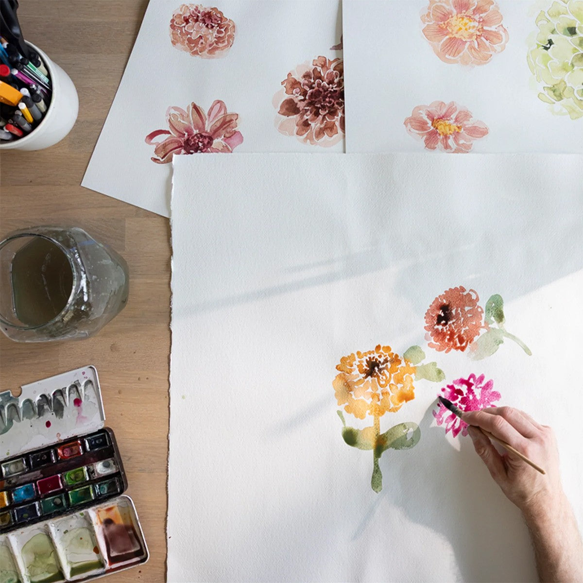 Let these colorful dahlias dress up the kitchen with blooming beauty. The joyful Daalia (Dahlia) pattern by Lasse Kovanen brings the lushness of summer to the home all year-round in colorful shades of green, pink and purple, which illuminate against a crisp white backdrop. The Pentik Daalia Tea Towel is made from a cotton and linen blend, which is handy for all jobs in the kitchen such as drying dishes, drying hands, covering warm pastries, and more.