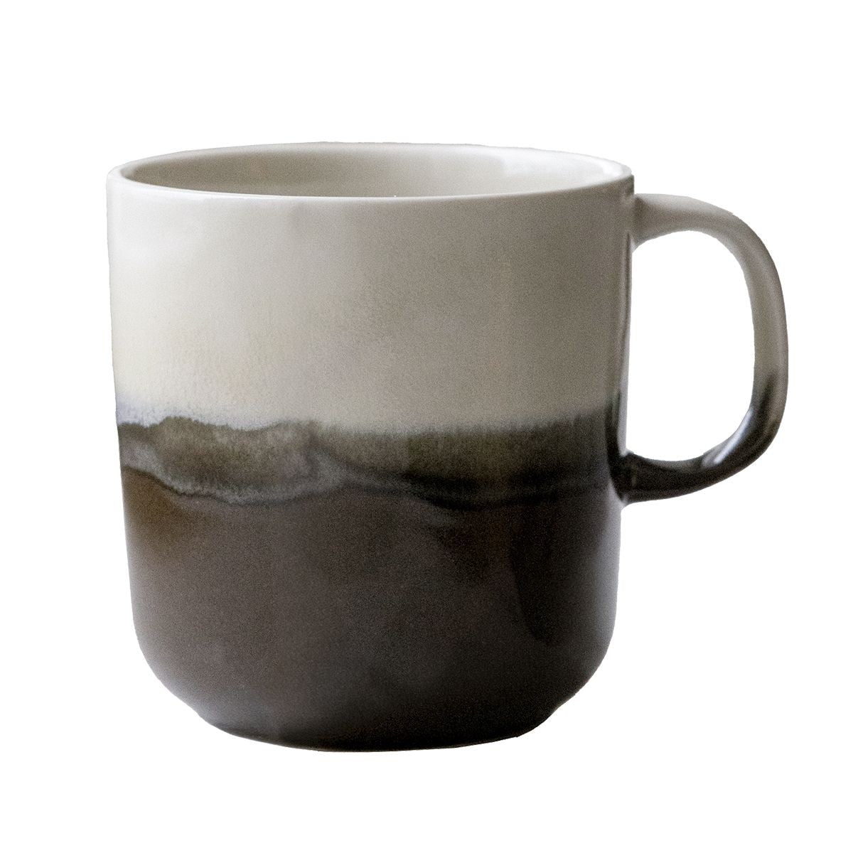 The Pentik Tuntu (Feel) dinnerware collection brings a joyful, northern feeling to the table setting. A natural ivory white interior wraps outside this Pentik mug and is contrasted by a dark brown hue. This free-flowing shape and organic colorway will create an earthy atmosphere during your everyday cup of coffee or tea. The color casts are achieved by hand-dipping the Tuntu dishes in a glaze color twice, meaning each piece is unique. Pentik dinnerware is made in Finland at their ceramics factory in Posio, adding even more authentic Nordic charm to the Tuntu dinnerware series.
