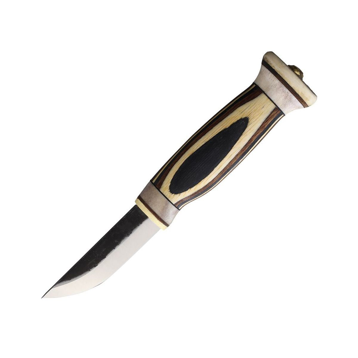 Material: | Carbon steel blade; Wood & reindeer horn handle; Leather sheath |
